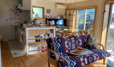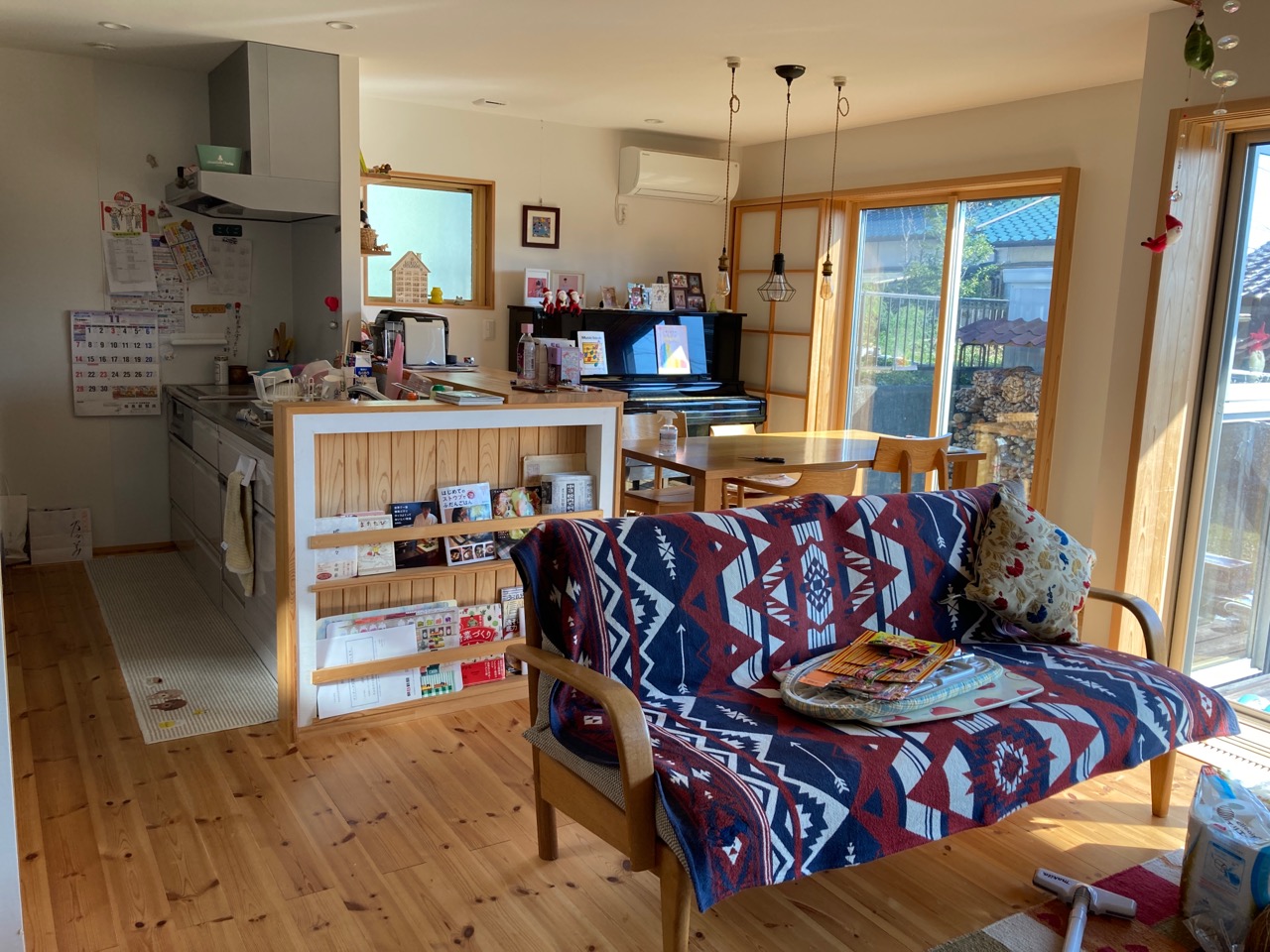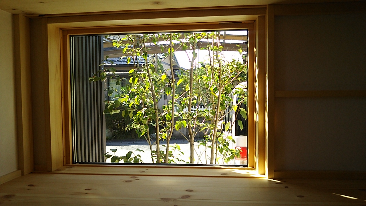 屋内もほとんど当時と変わらず、キレイにご使用いただいているようです。そういえばお引渡しの日もこんなような晴れた日だったと記憶しています。しばらくして訪ねたらこのクリスマスツリーも飾られていました。床や窓枠に使用した木材が日焼けして、いい味を醸し出しています。