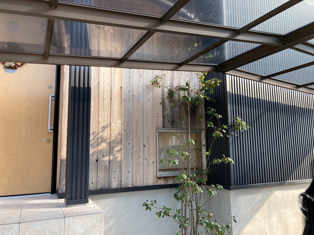 お引渡し後1年点検依頼4年ぶりに訪れました。本日はs様邸5年点検です。さすがに5年も経つと外壁に張った杉板が変色してきたりしています。それでもキレイに保たれている状態です。