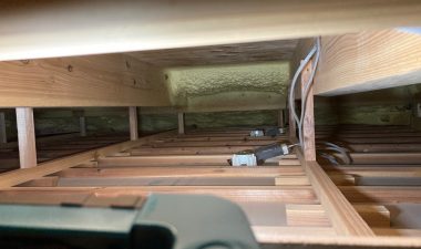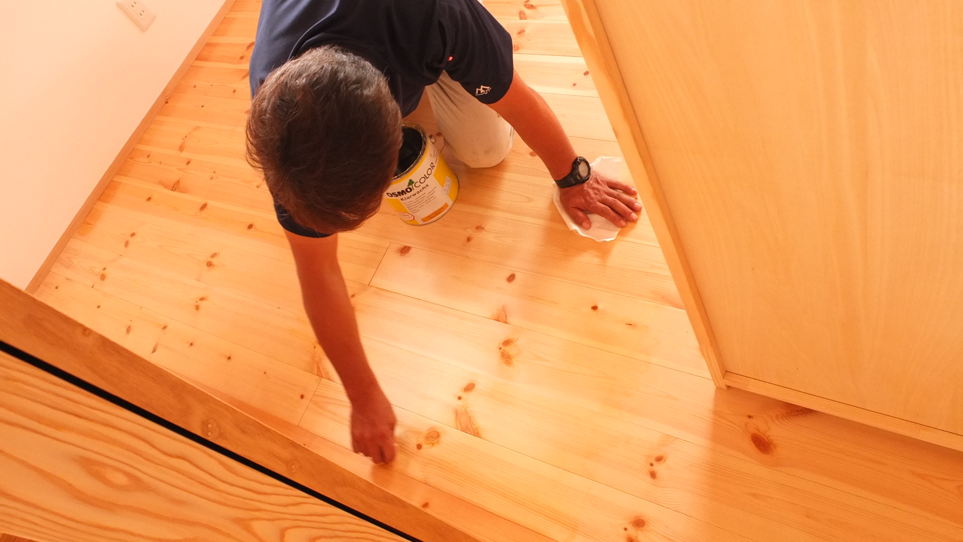 見学会終了後、ちょっとだけ床の補修を行っています。