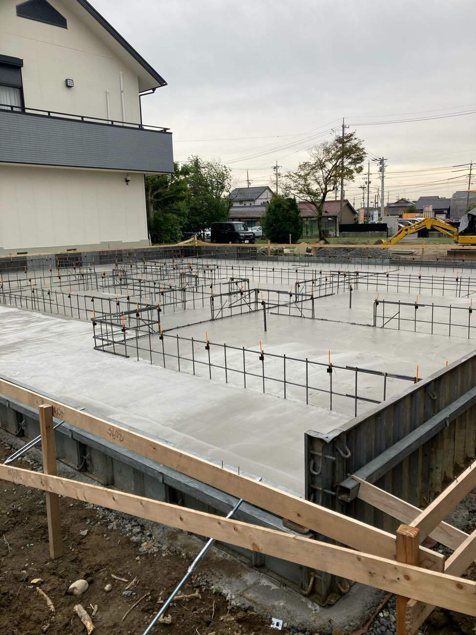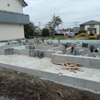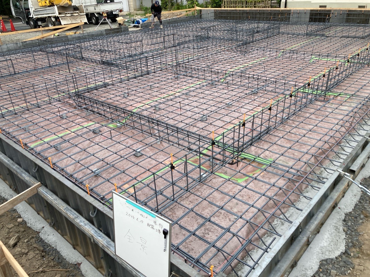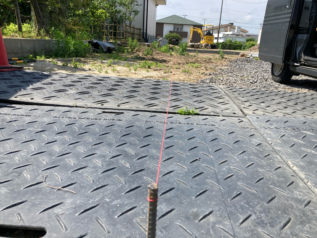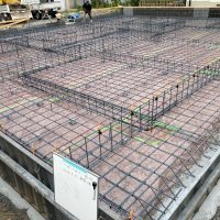配筋工事の前に防湿シート敷設と捨てコンクリート打設が行われました。f様もお仕事終わりなどに現場に立ち寄って見ていかれ、この材料は何?と質問をされました。住宅新築工事に伴って建築に興味を持ってもらえるのは良い事です。