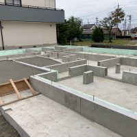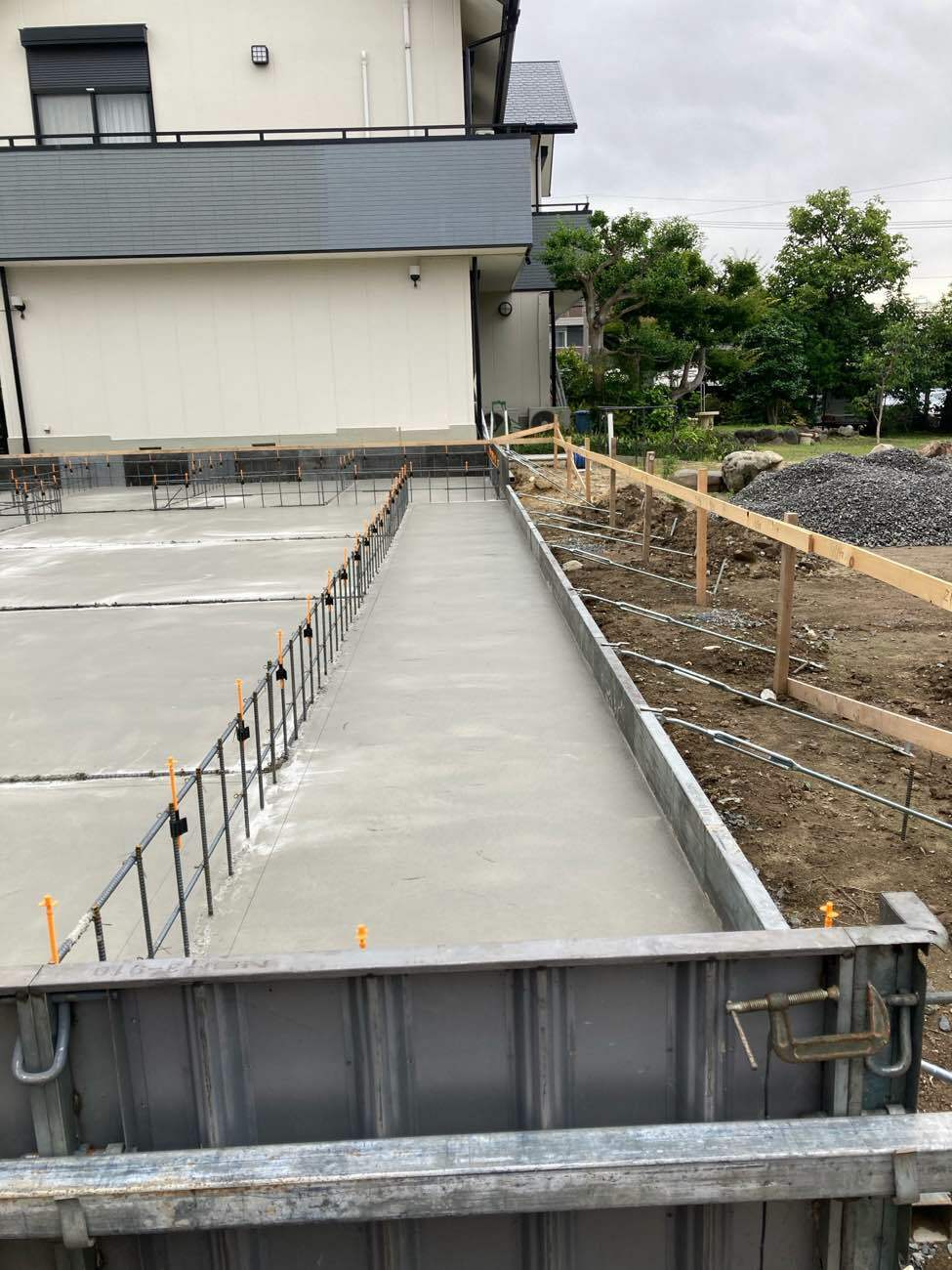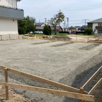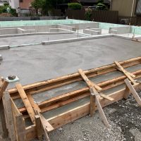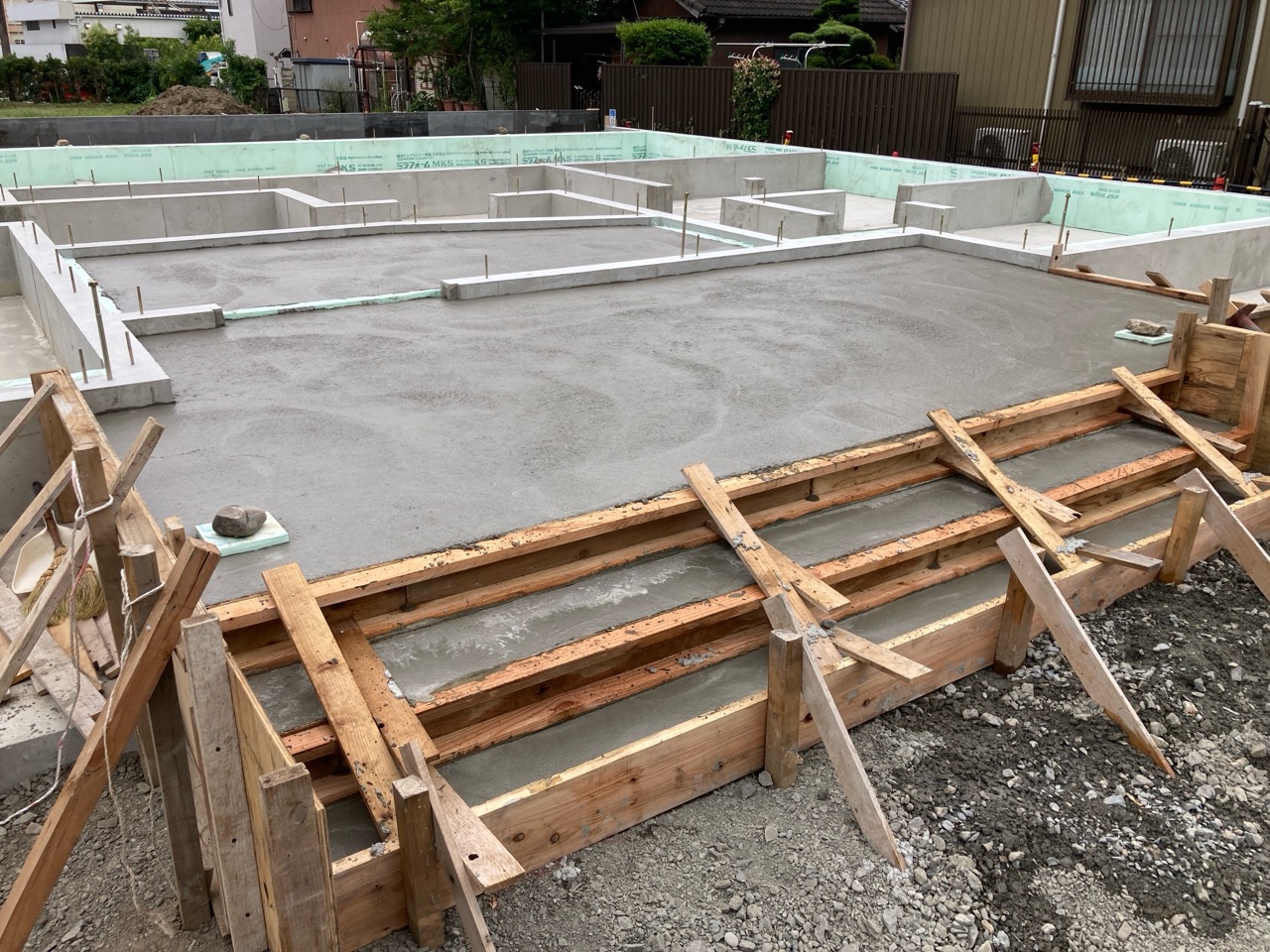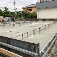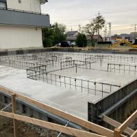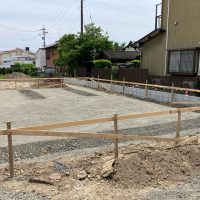 ショールームでのお打合せ後、現場によって基礎工事の進捗を見に行ったのですが、すでに職人さんは作業を終え現場を離れた後でした。コンクリートもキレイに打設できているようです。これから雨仕舞ができるまでは梅雨時の雨が溜まっては排水しての繰り返しになりそうです。