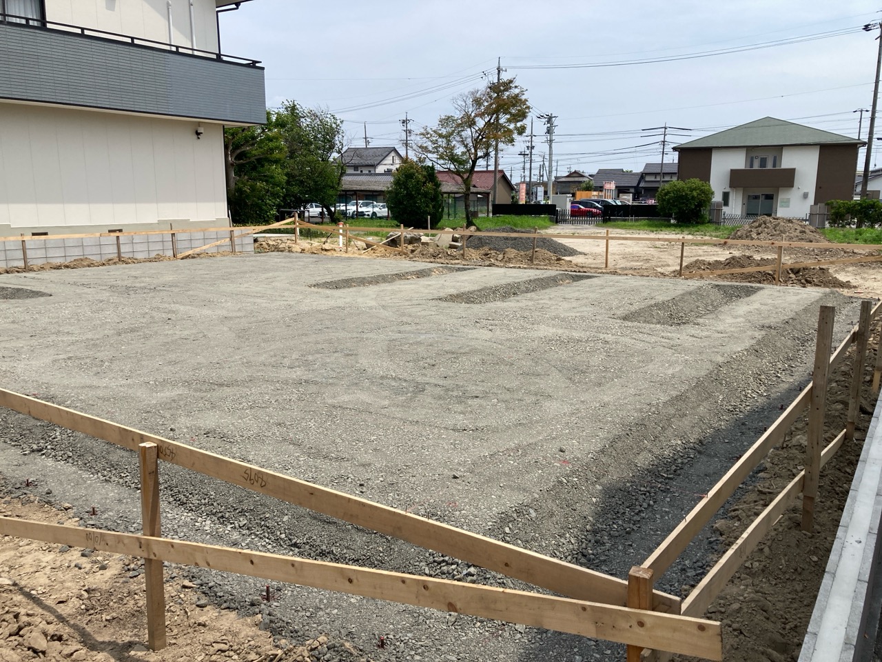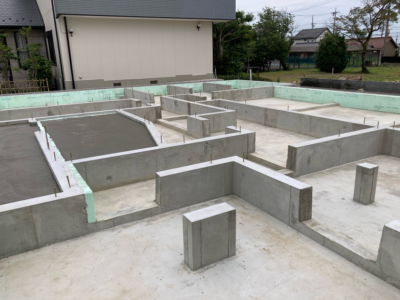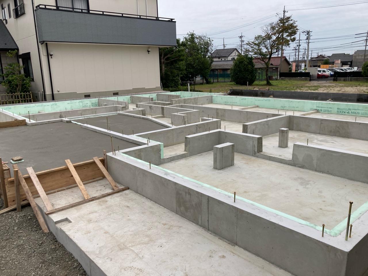ショールームでのお打合せ後、現場によって基礎工事の進捗を見に行ったのですが、すでに職人さんは作業を終え現場を離れた後でした。コンクリートもキレイに打設できているようです。これから雨仕舞ができるまでは梅雨時の雨が溜まっては排水しての繰り返しになりそうです。