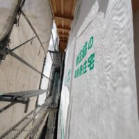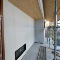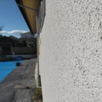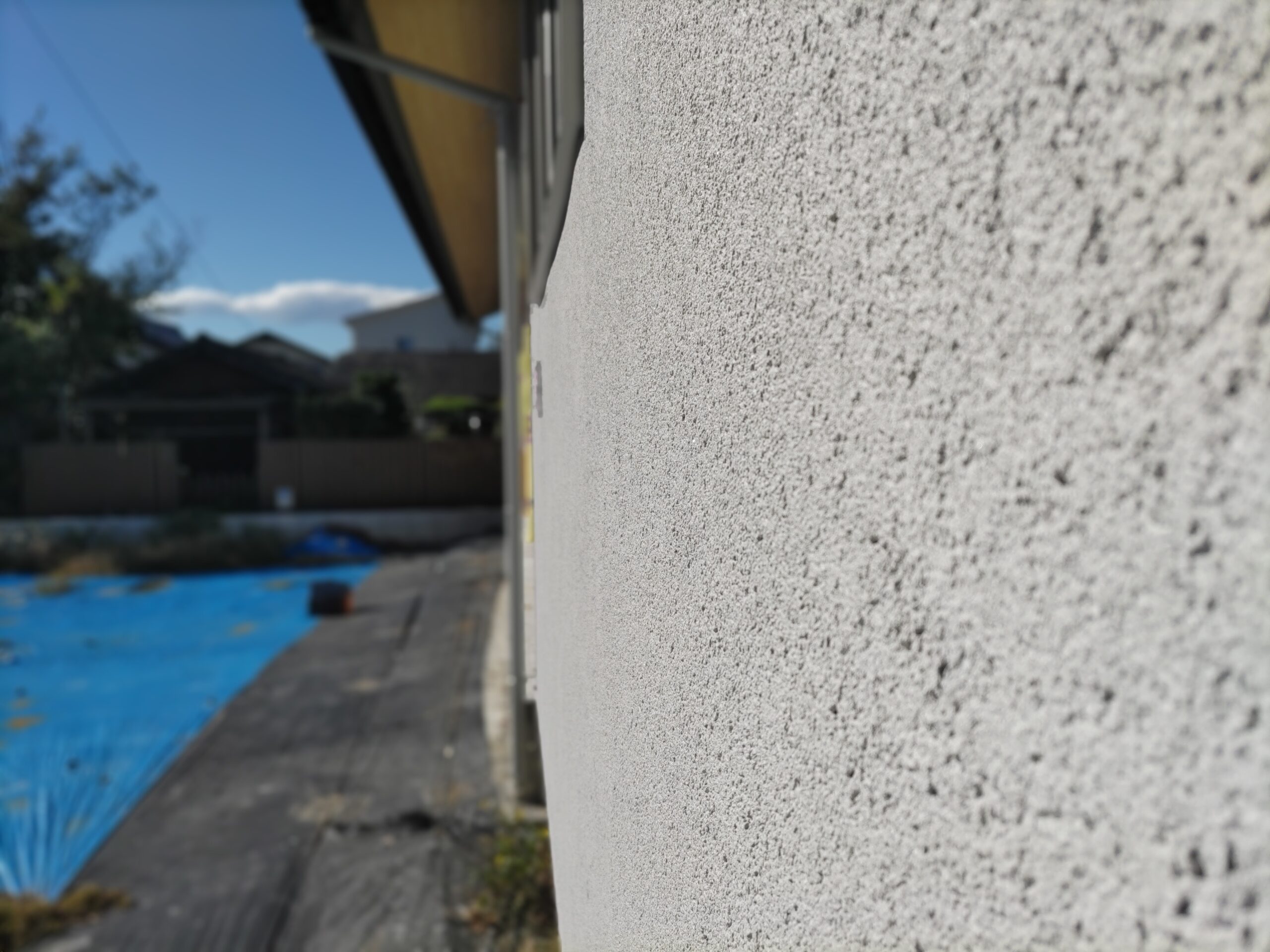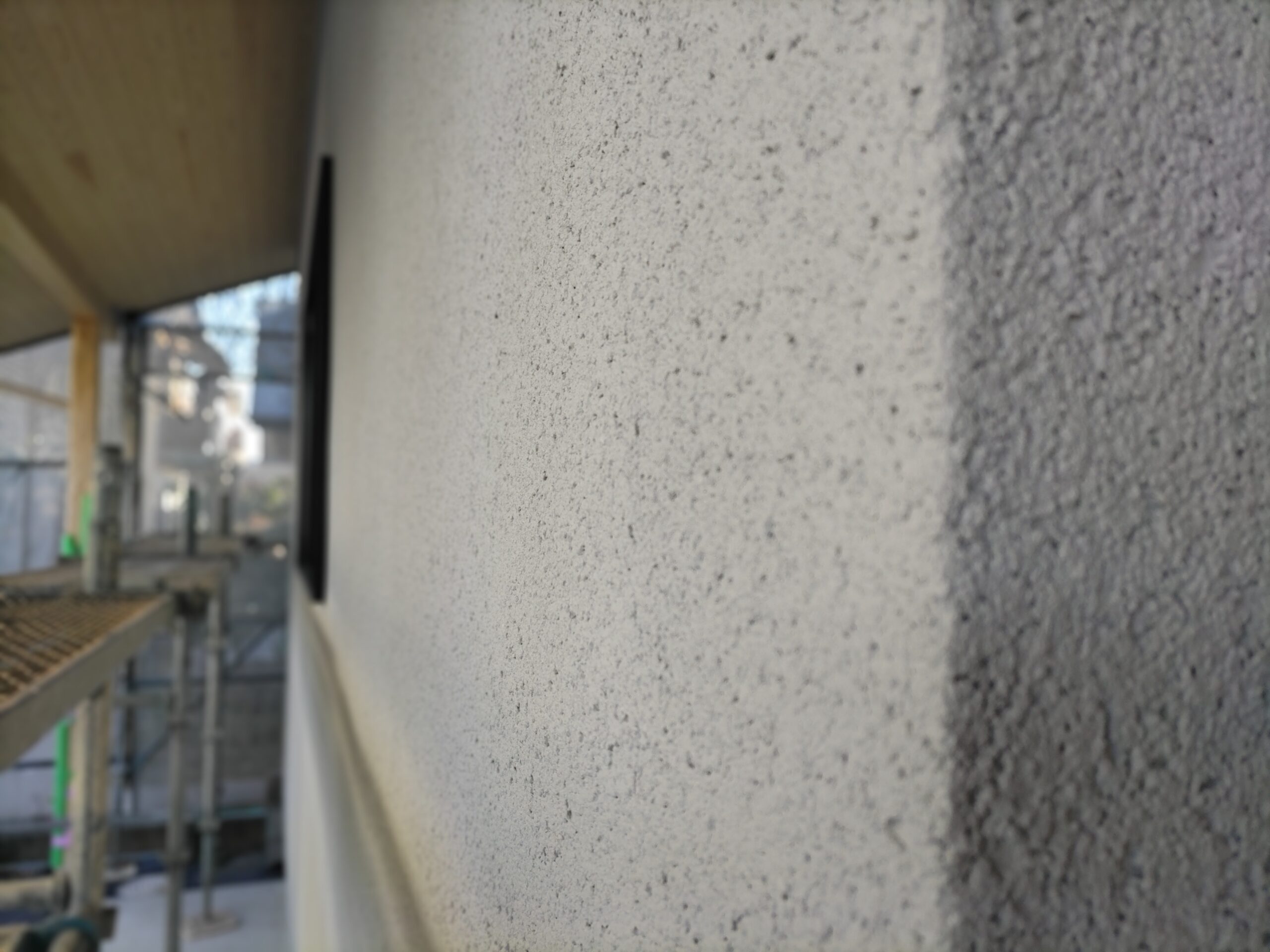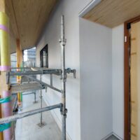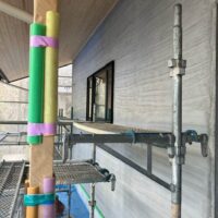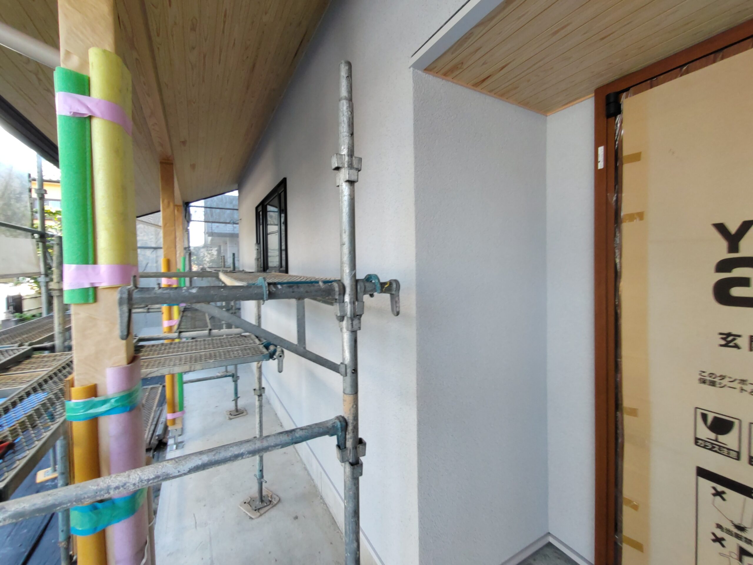 外壁左官工事は中塗りが終わり、表面が綺麗に均されてきました。乾燥を待っていよいよ仕上塗に入ります。