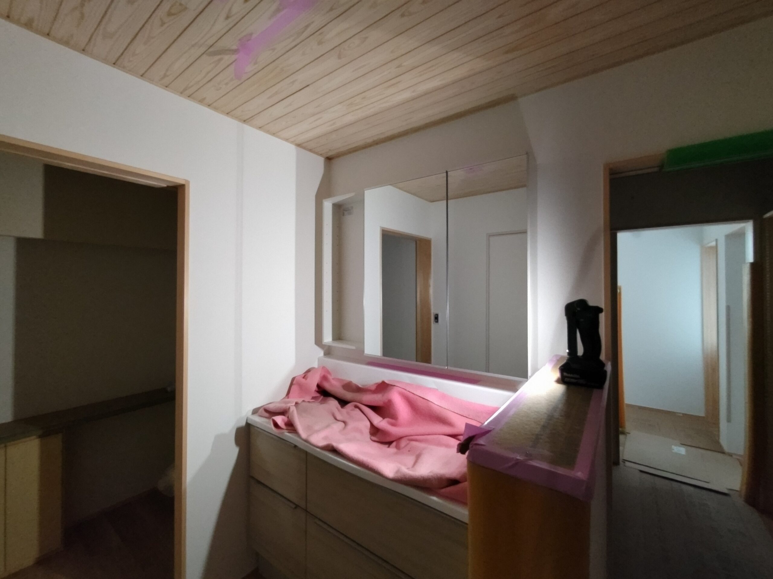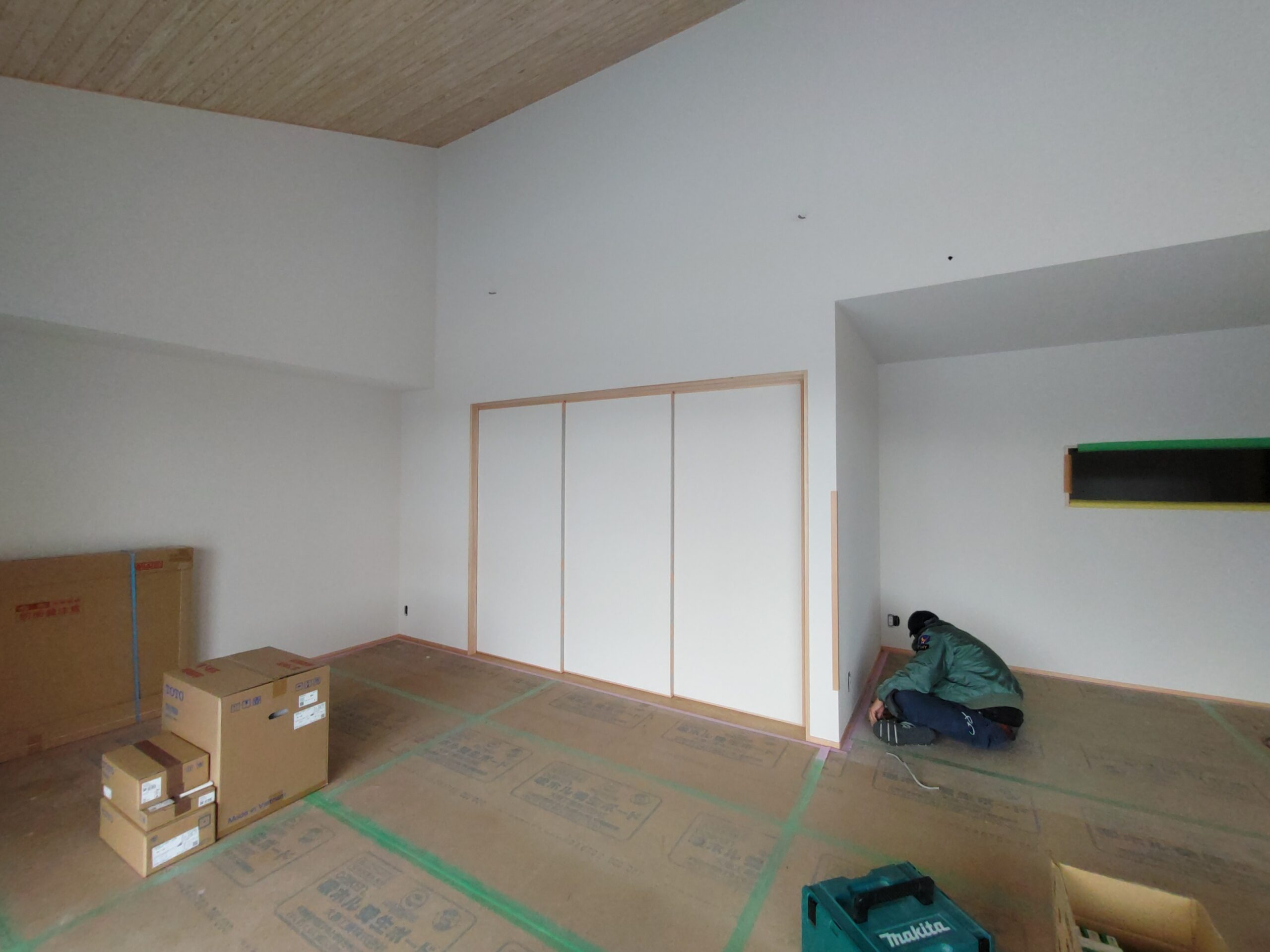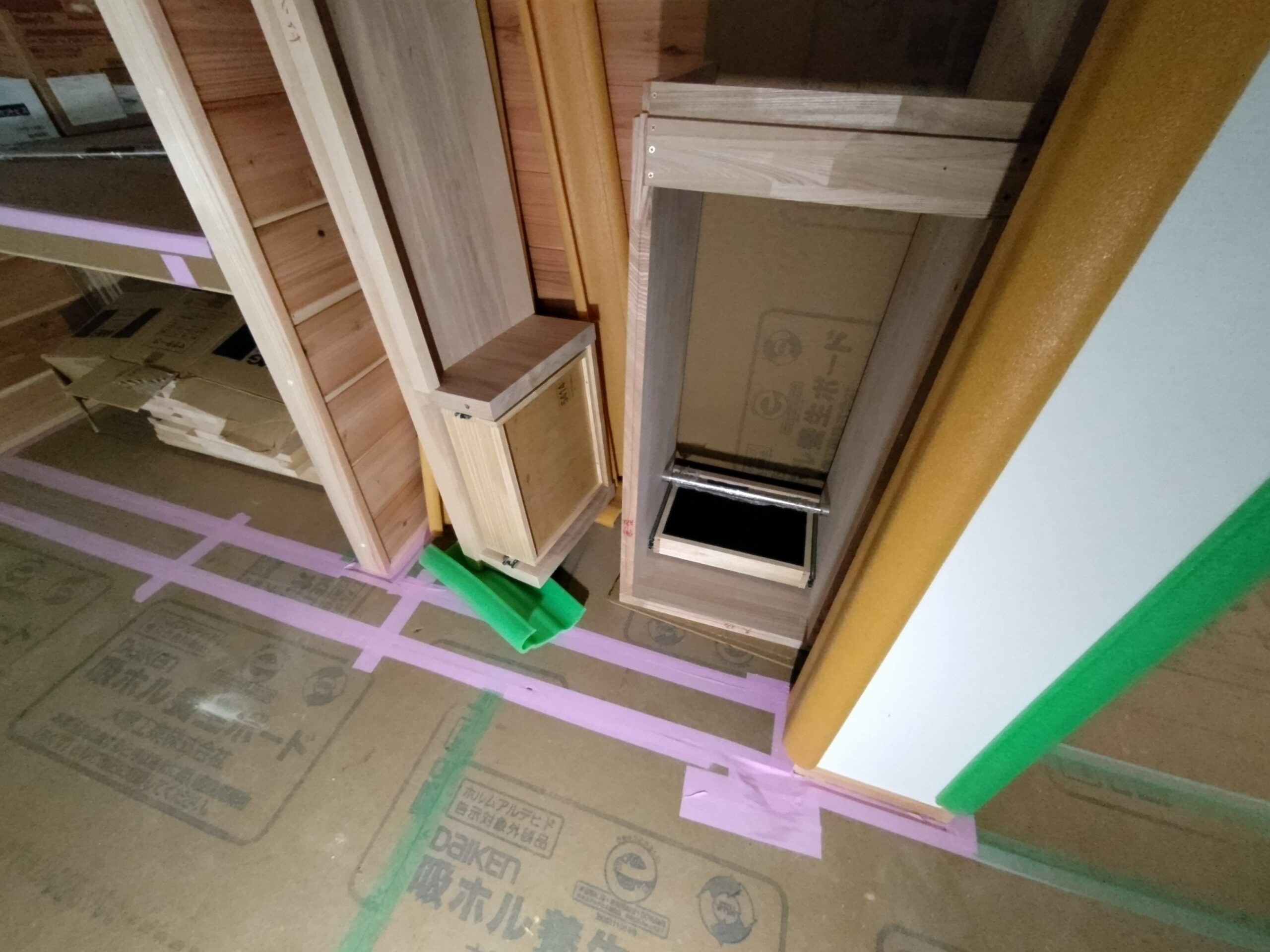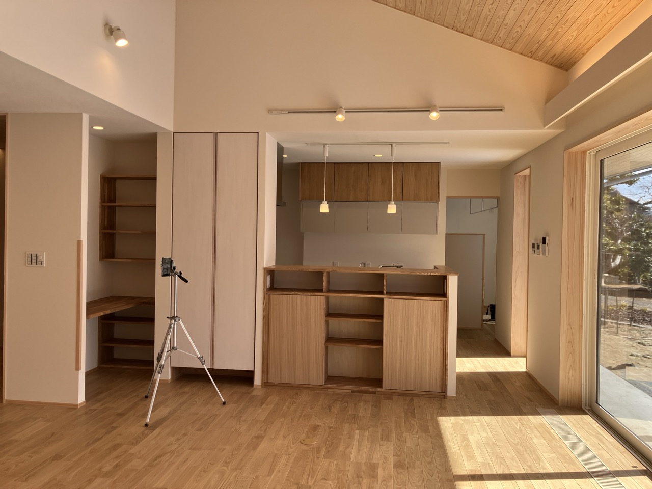 完成クリーニング工事が行われました。各種工事で出たホコリなどがキレイサッパリ掃除され、いよいよ住宅としての空間が整ってきています。養生が無いだけで広々と見えるのは気のせいでしょうか。