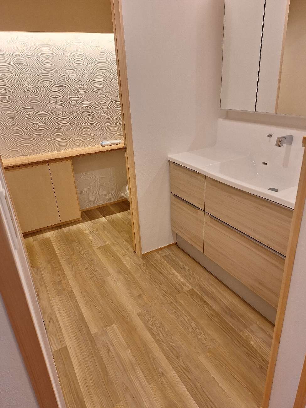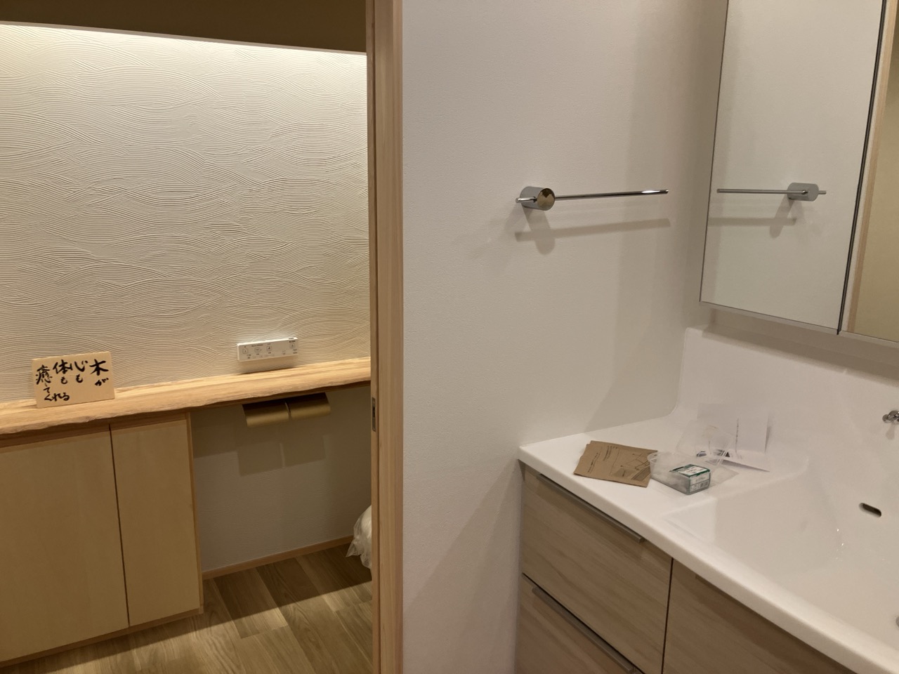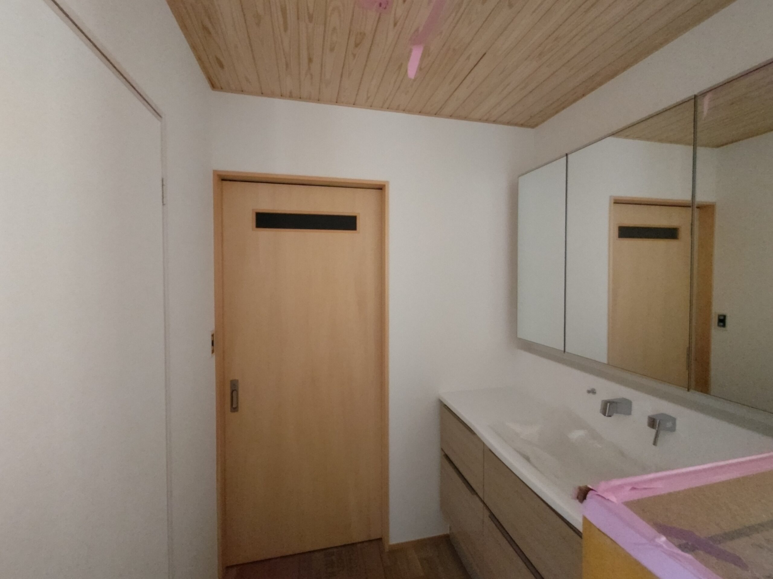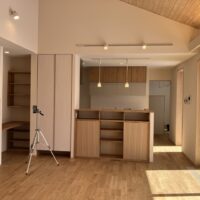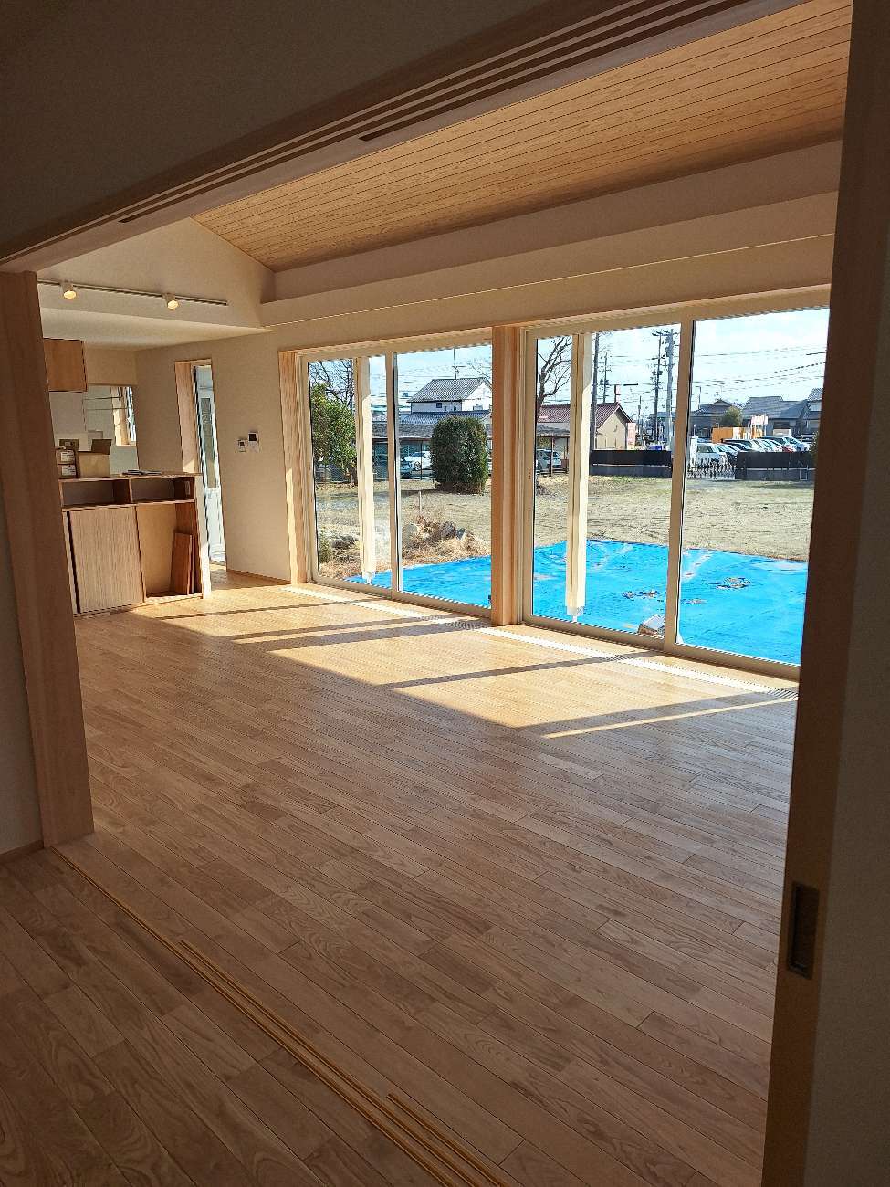 完成クリーニング工事が行われました。各種工事で出たホコリなどがキレイサッパリ掃除され、いよいよ住宅としての空間が整ってきています。養生が無いだけで広々と見えるのは気のせいでしょうか。