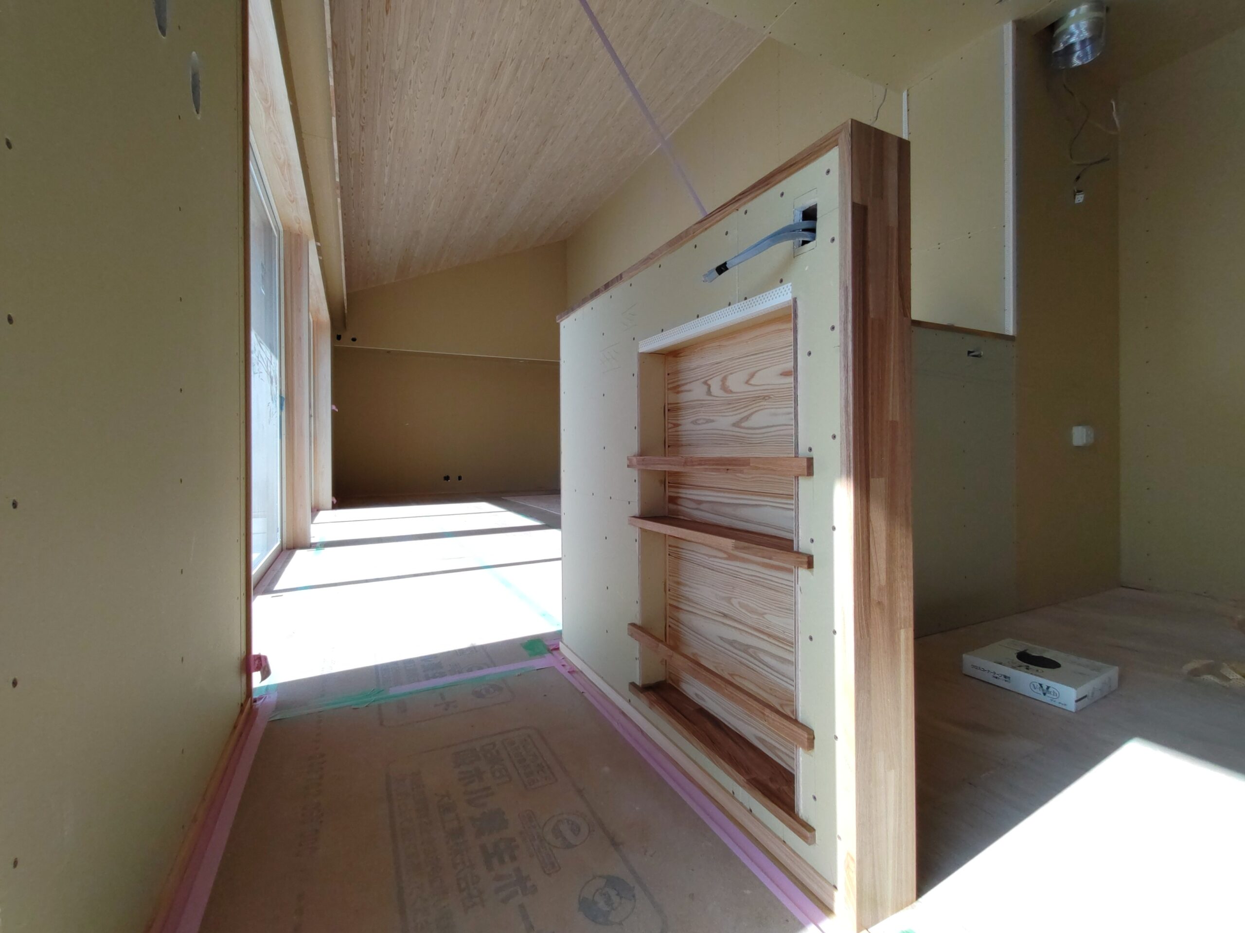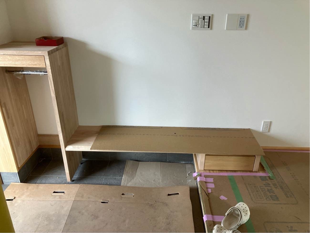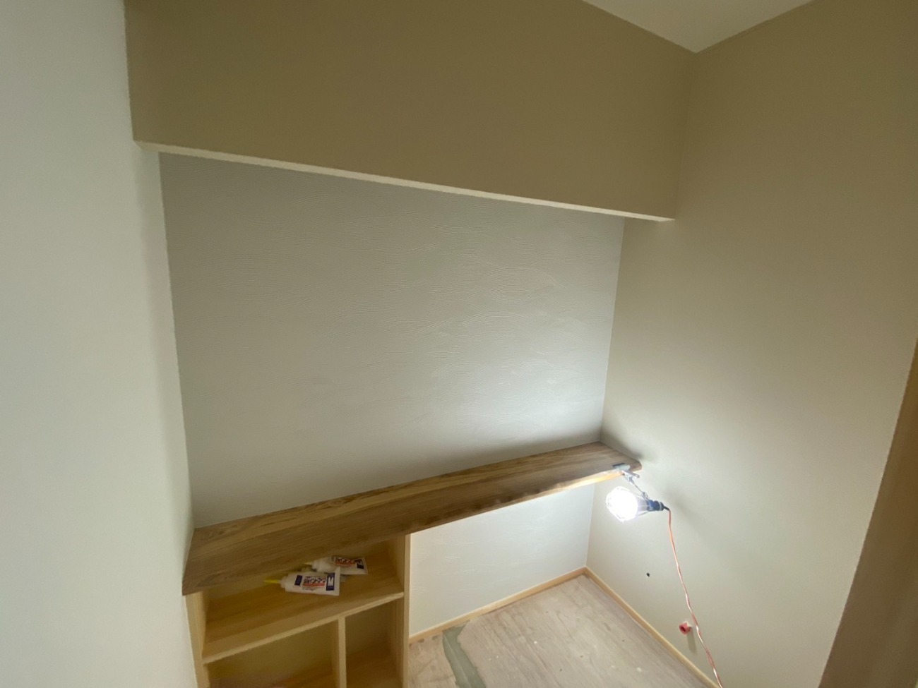 造作、製作家具工事の仕上げが着々と完了していきます。お打ち合わせによってf様が「ここにこれが欲しい」といったものがだんだんと形になっていき、生活の形も見えてきました。