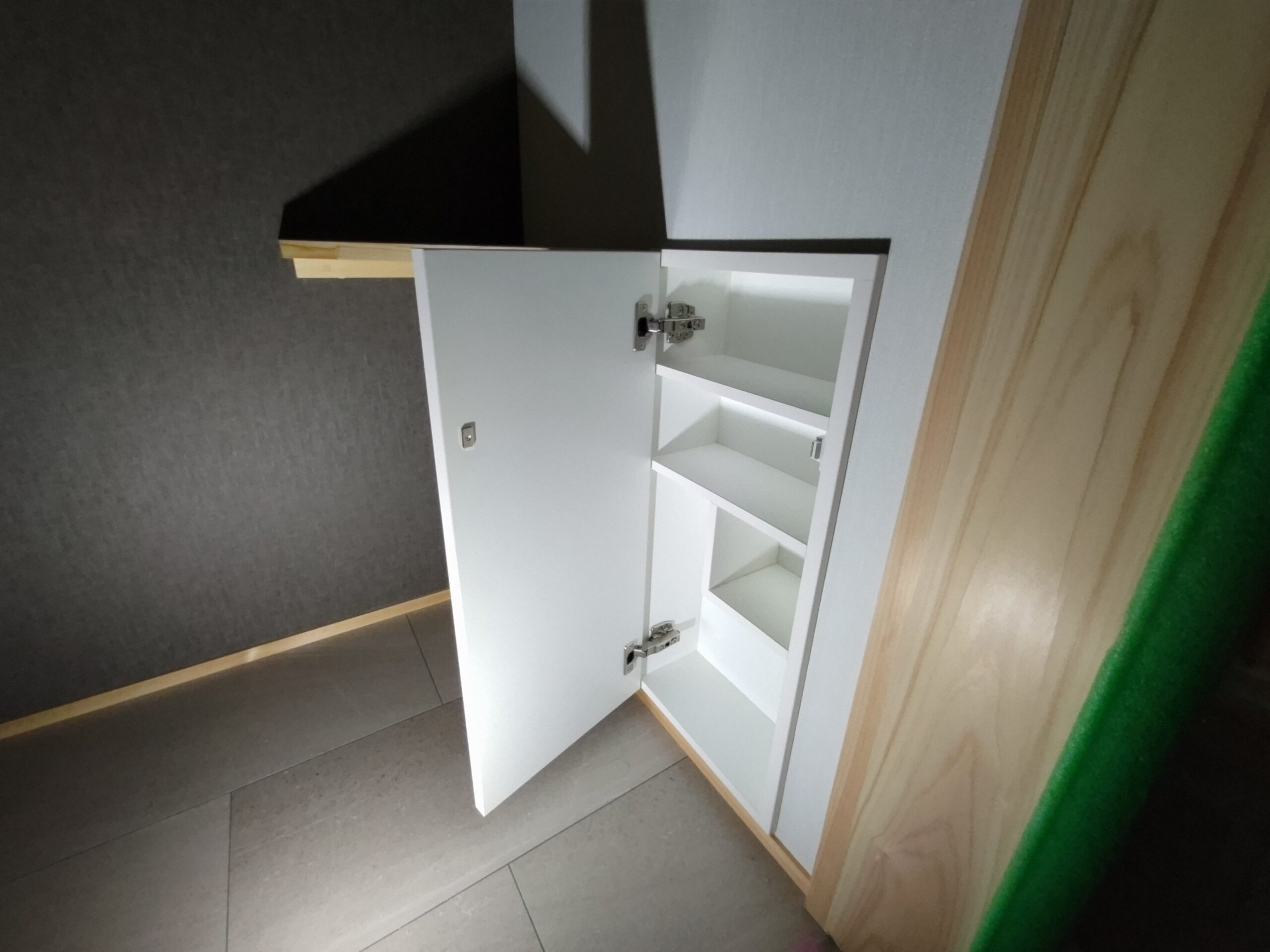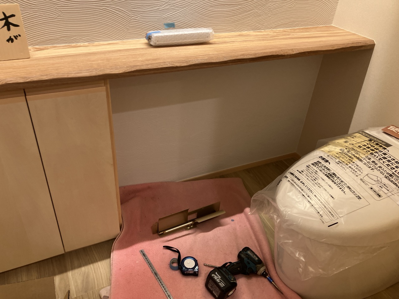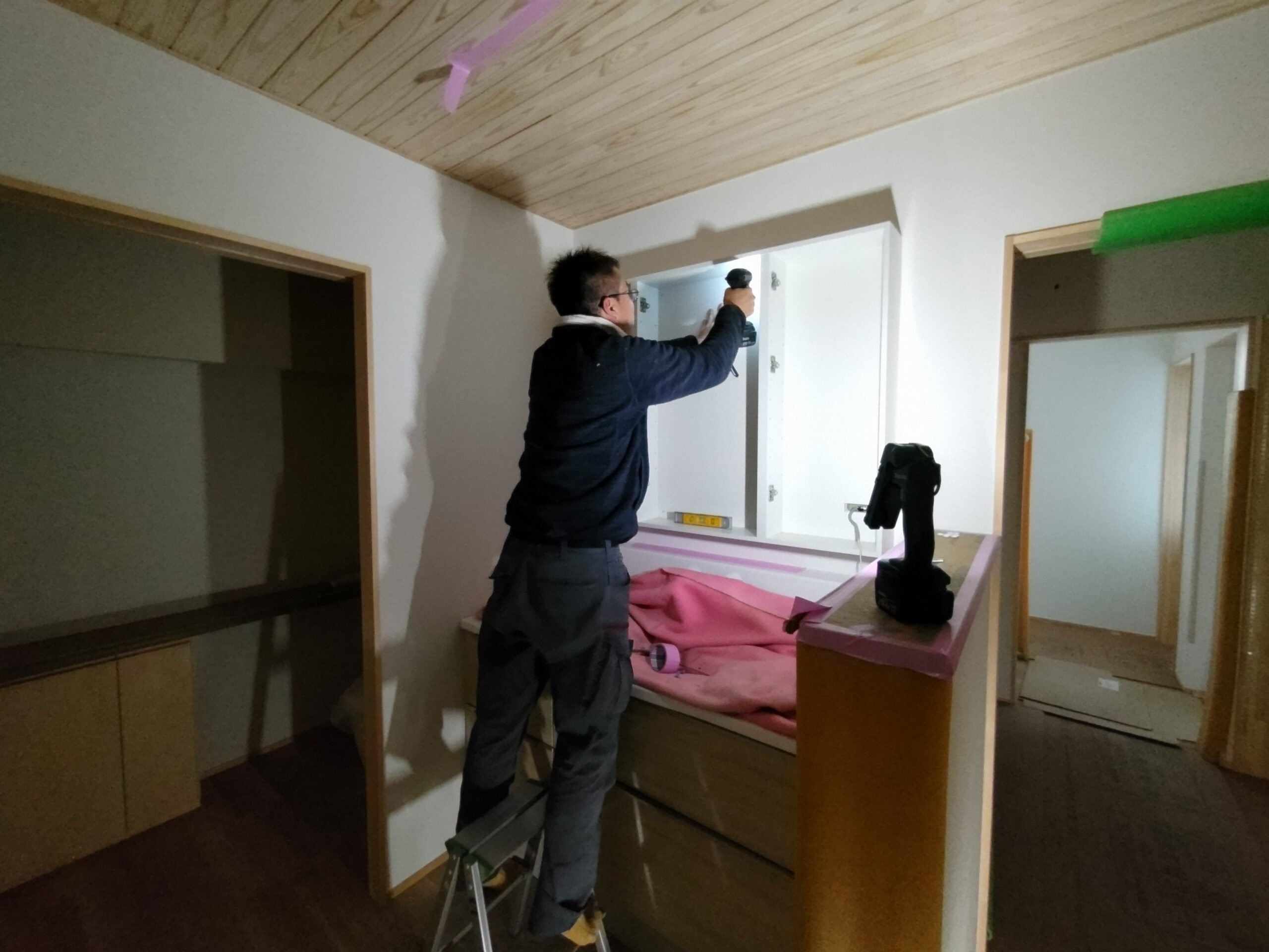 造作、製作家具工事の仕上げが着々と完了していきます。お打ち合わせによってf様が「ここにこれが欲しい」といったものがだんだんと形になっていき、生活の形も見えてきました。