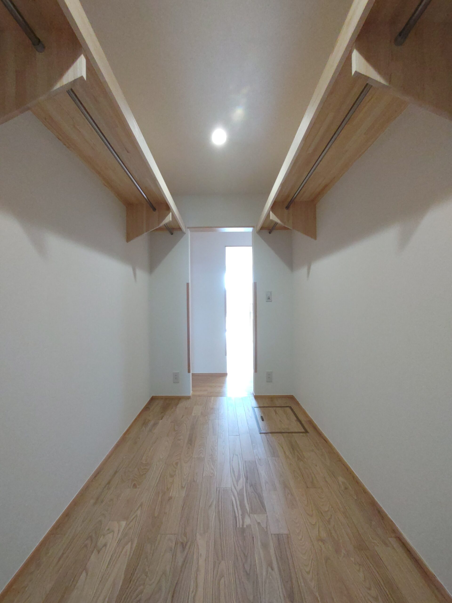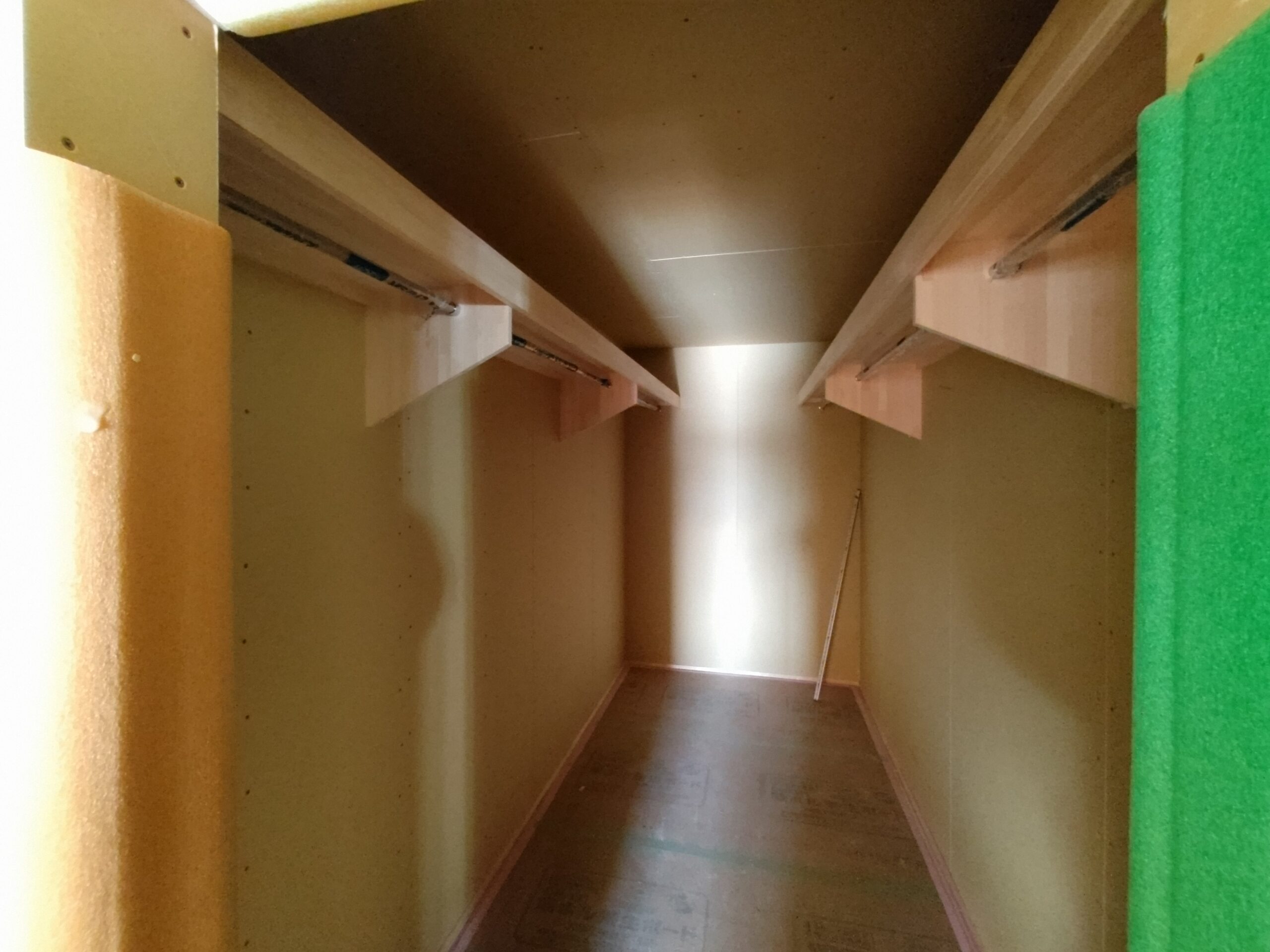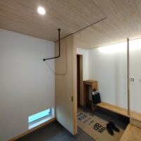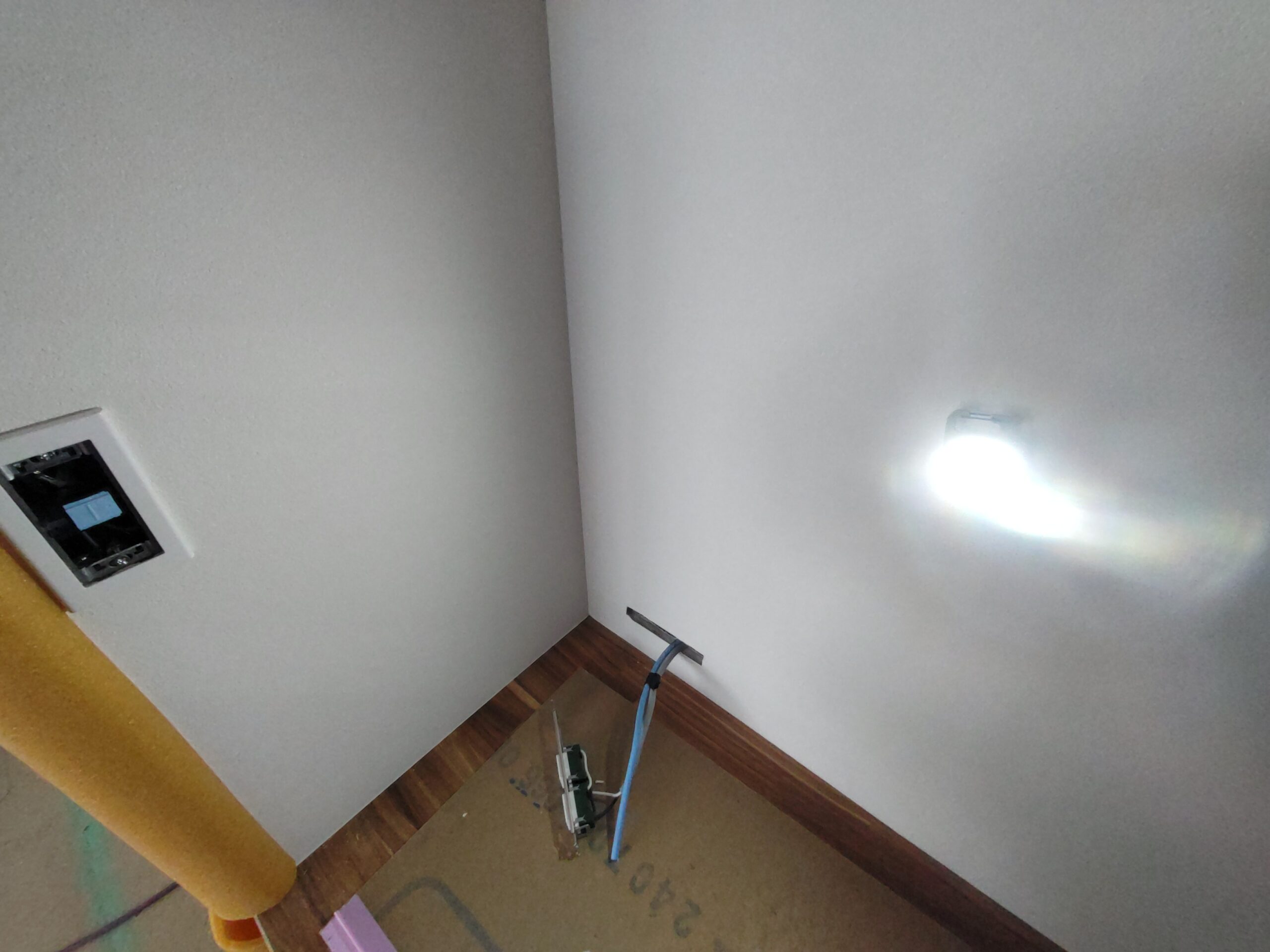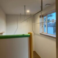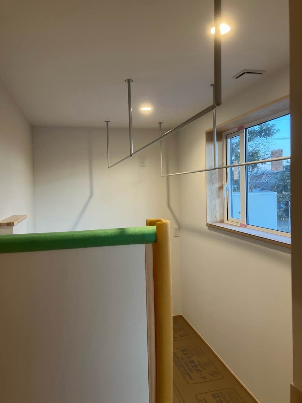 ランドリールームの洗濯物干やクロークのコートハンガーも取付けられました。何気に照明器具も接続が終わり、点灯しています。(点灯の瞬間を見逃したー…!)