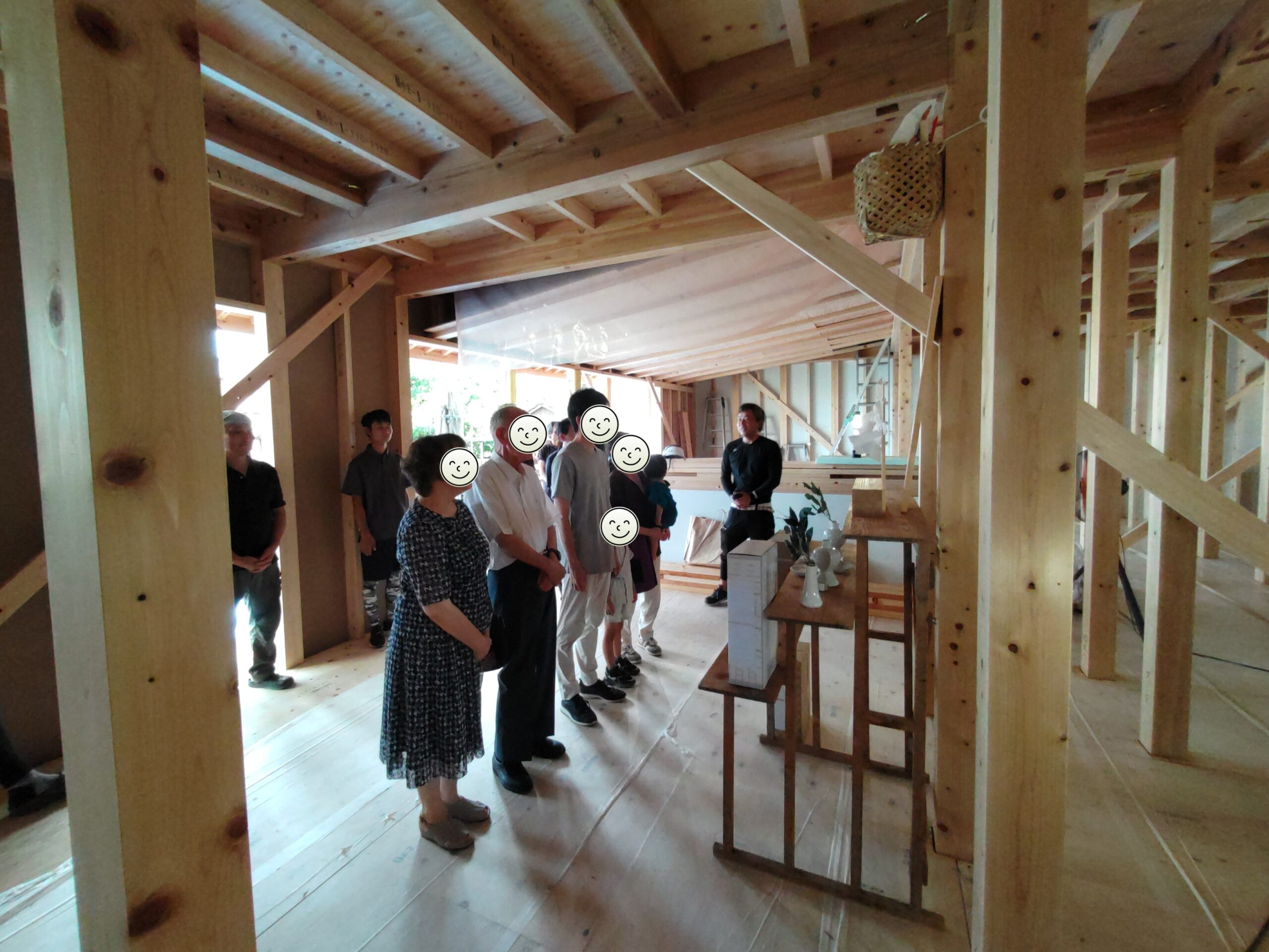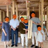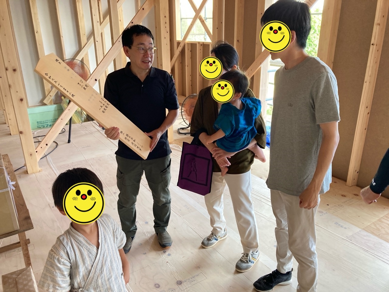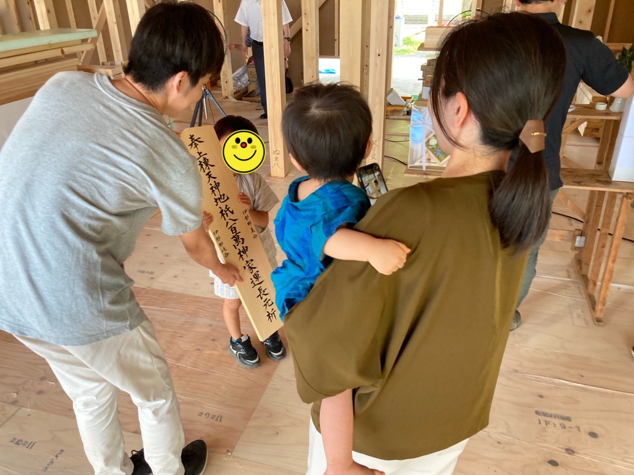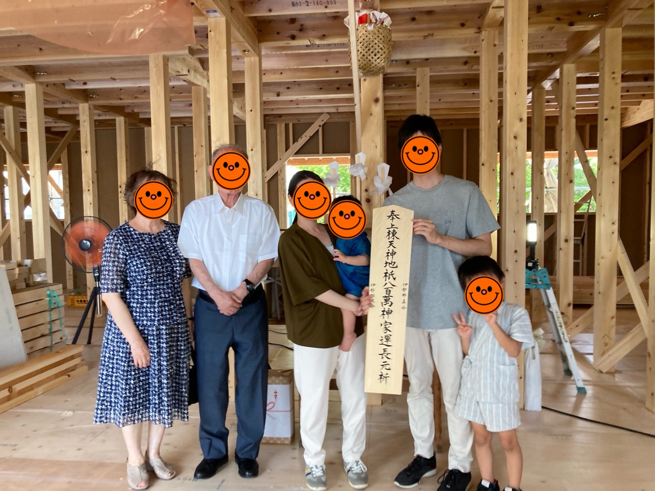 ご家族のご発展、工事の安全を祈願して『真夏の上棟式』が行われました。いよいよスタートと言った気持ちになってきました。