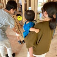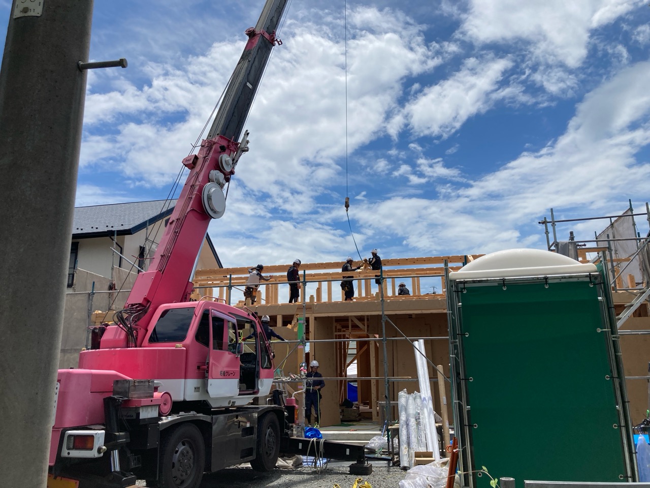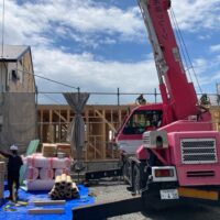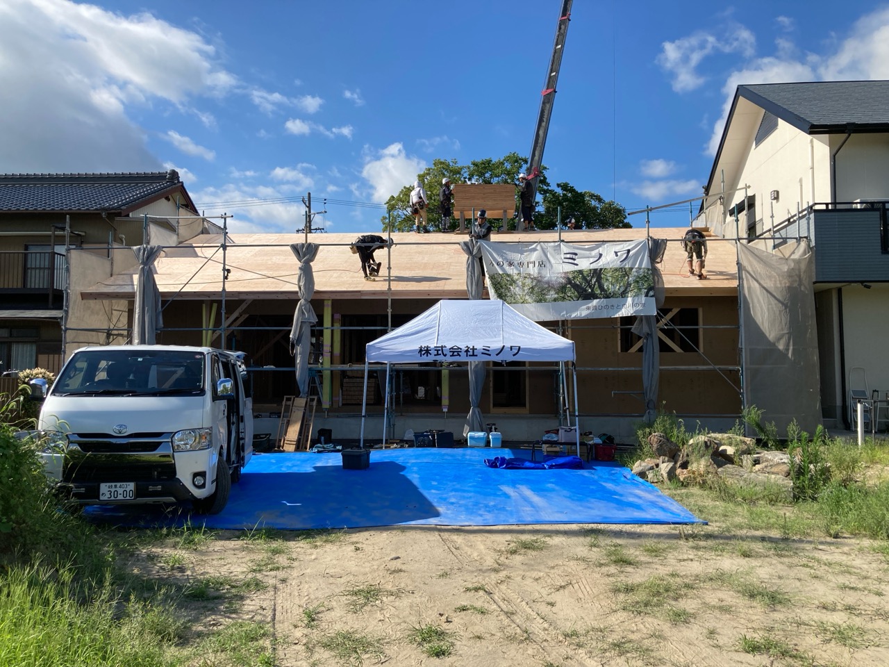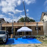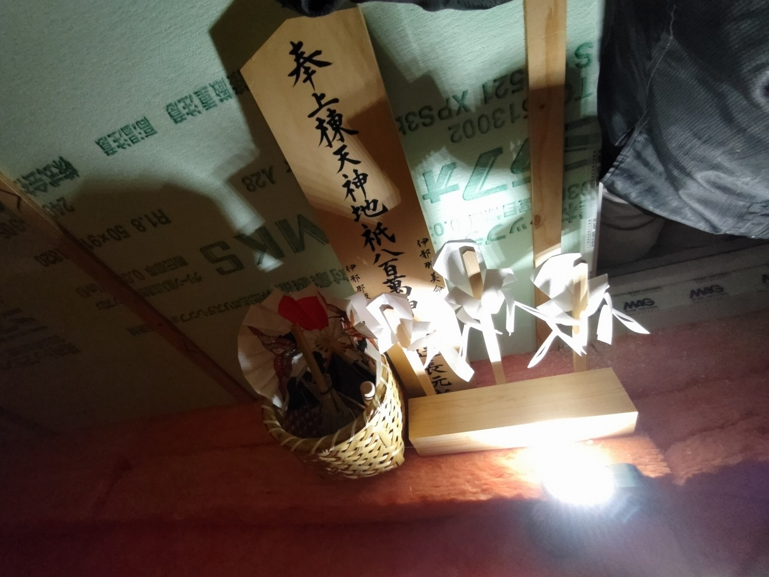 ご家族のご発展、工事の安全を祈願して『真夏の上棟式』が行われました。いよいよスタートと言った気持ちになってきました。