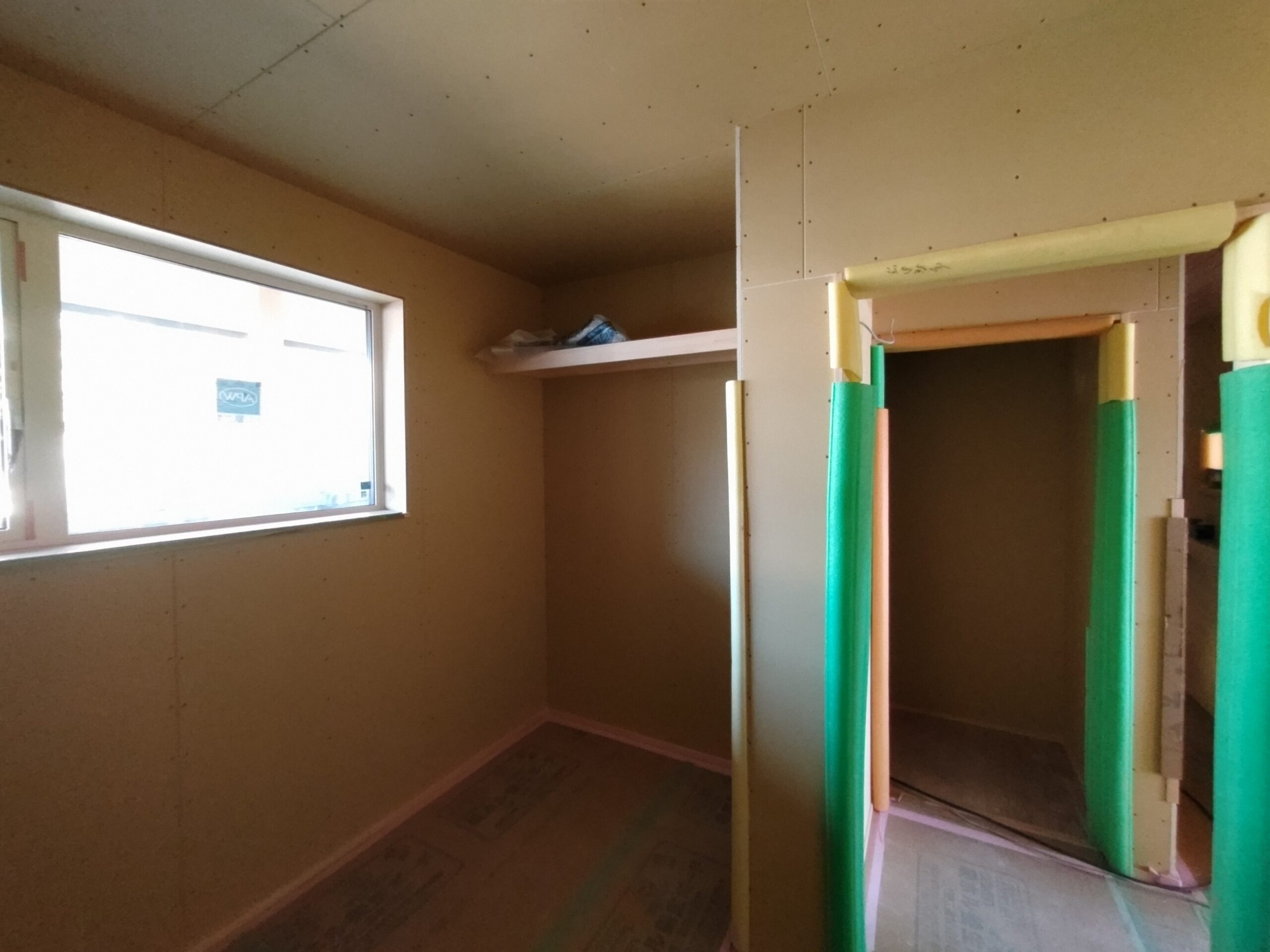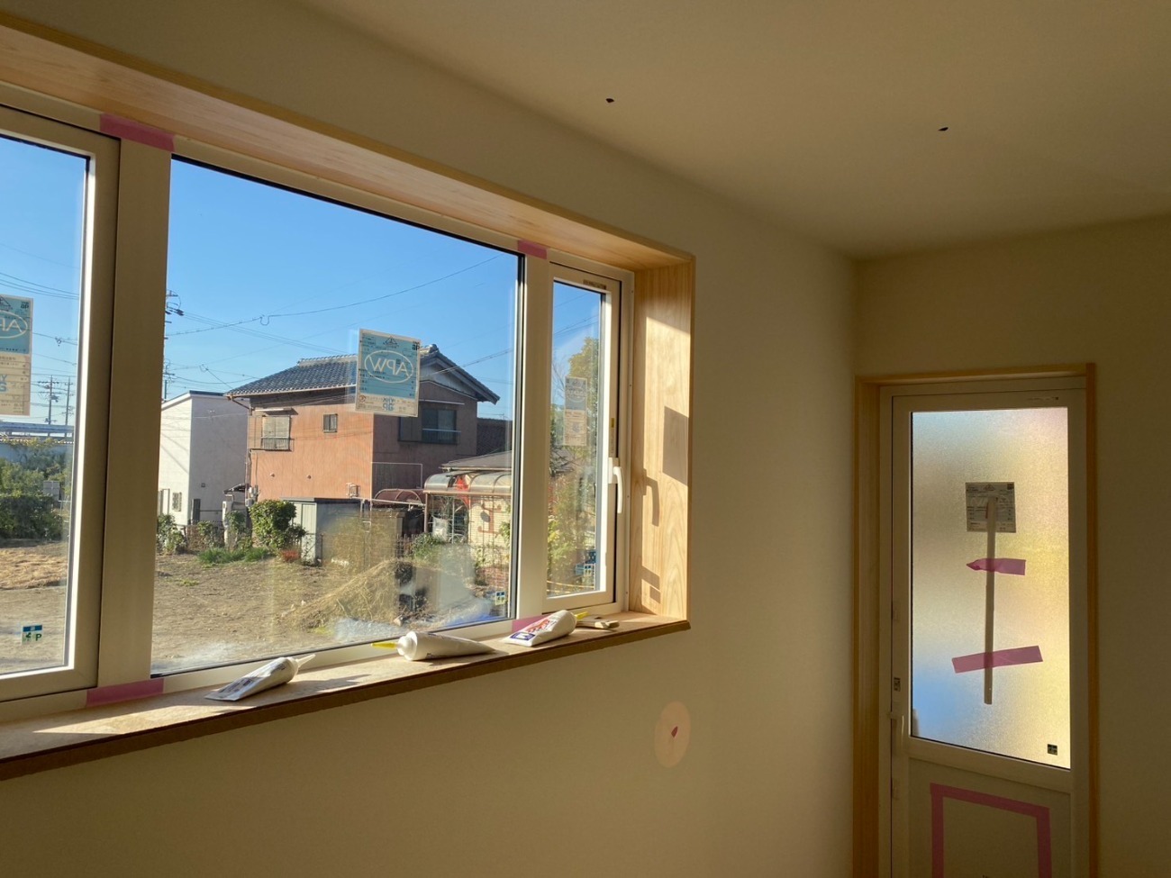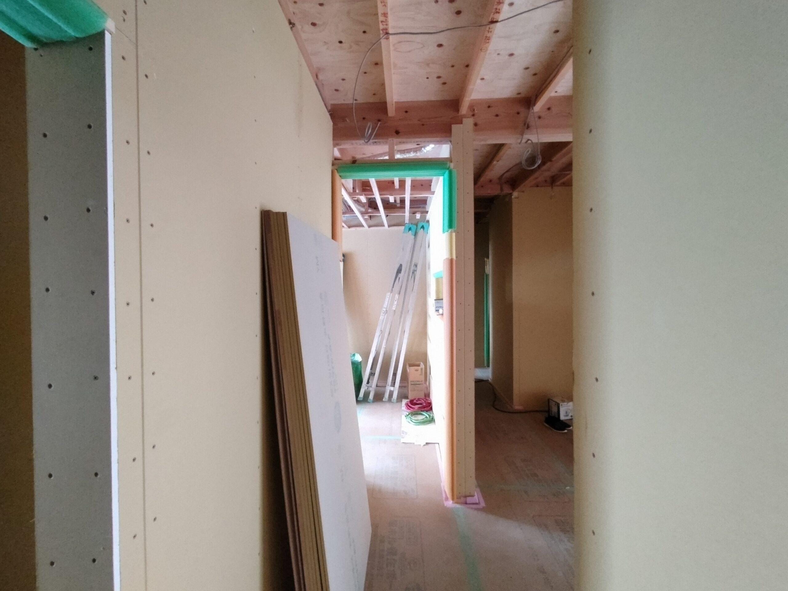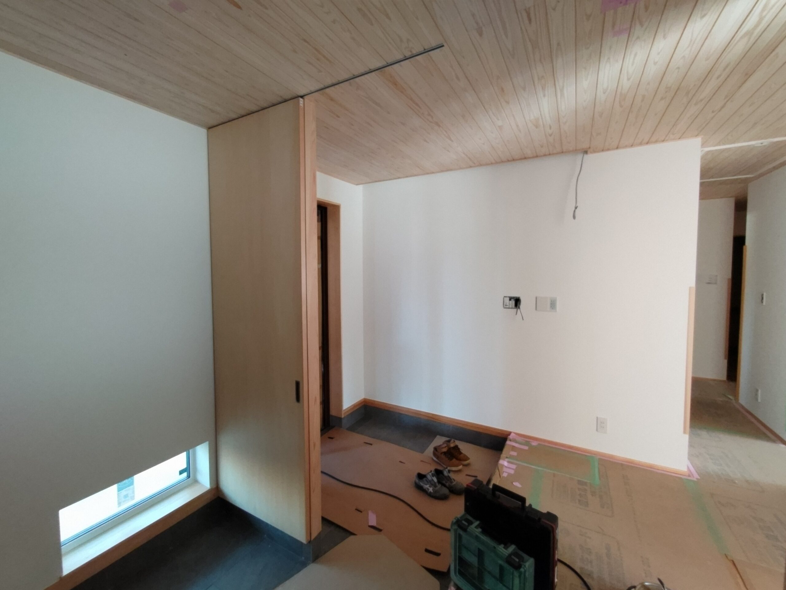 各箇所のクロスが貼られてきました。それぞれの部屋が『色』を帯びてくると、だんだんと『現場』から『住宅』らしくなっていきます。12月も半ばを過ぎ、今年の作業も大詰めです。