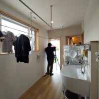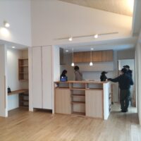 見学会二日目を開催。ほぼ初日と同じご来場者数で、予約制ではあるもののスタッフも大わらわです。朝から小雨の天候でしたが午後には少し陽射しも入り、昨日に引き続きエアコンをつけていると少々暑い室内環境でした。ご来場いただきましたお客様、見学会をご了承いただきましたF様、二日間ありがとうございました。