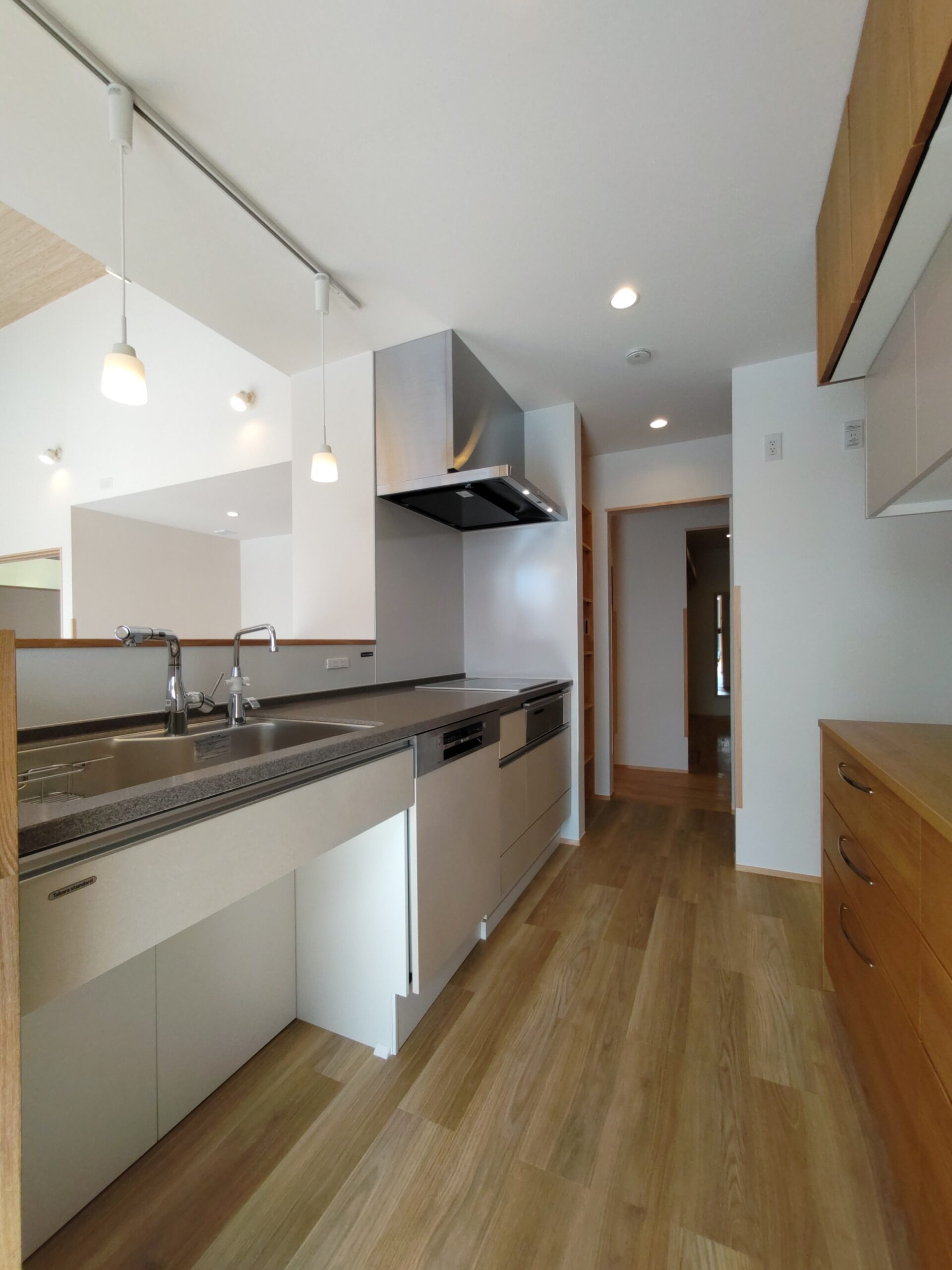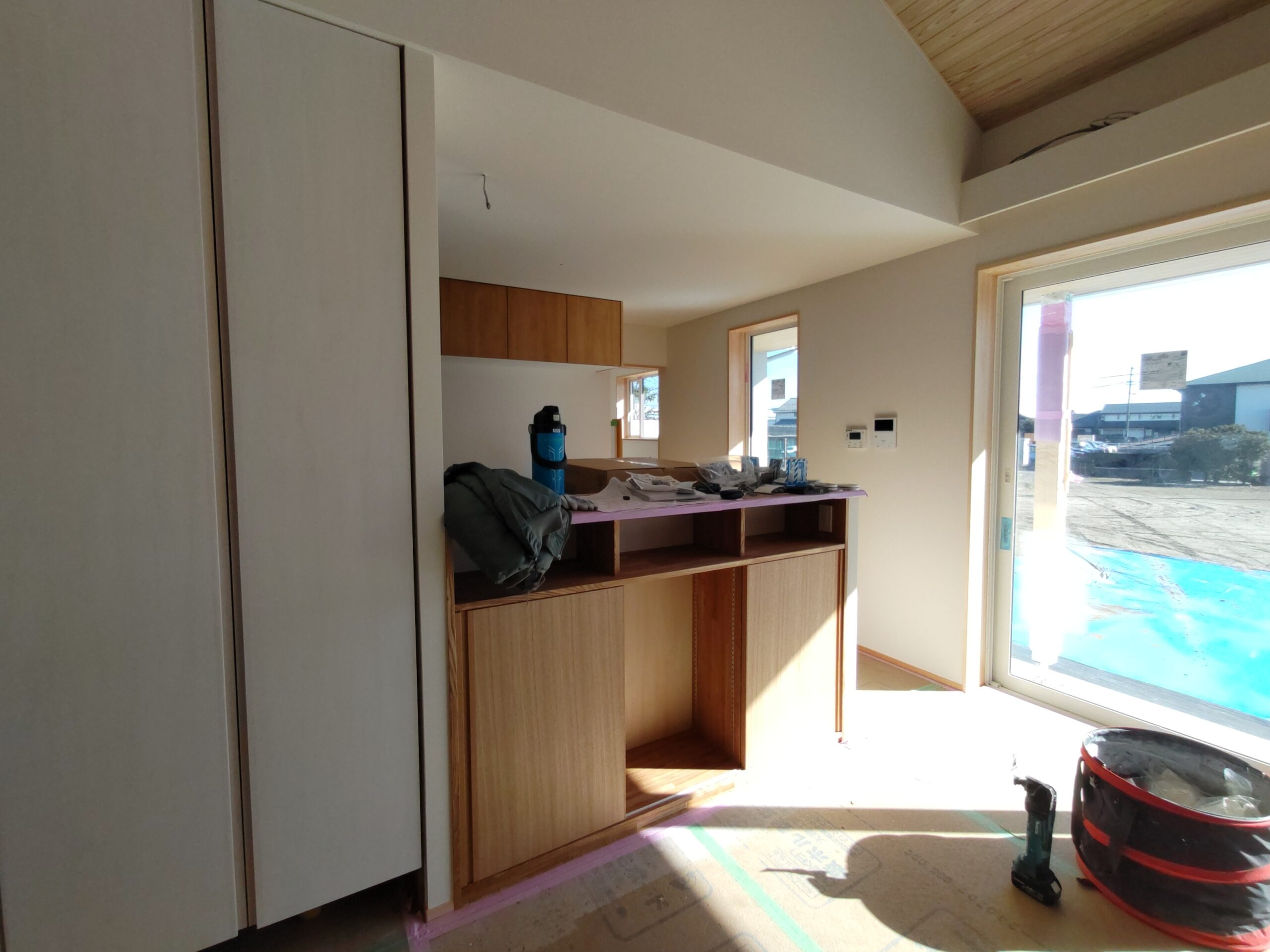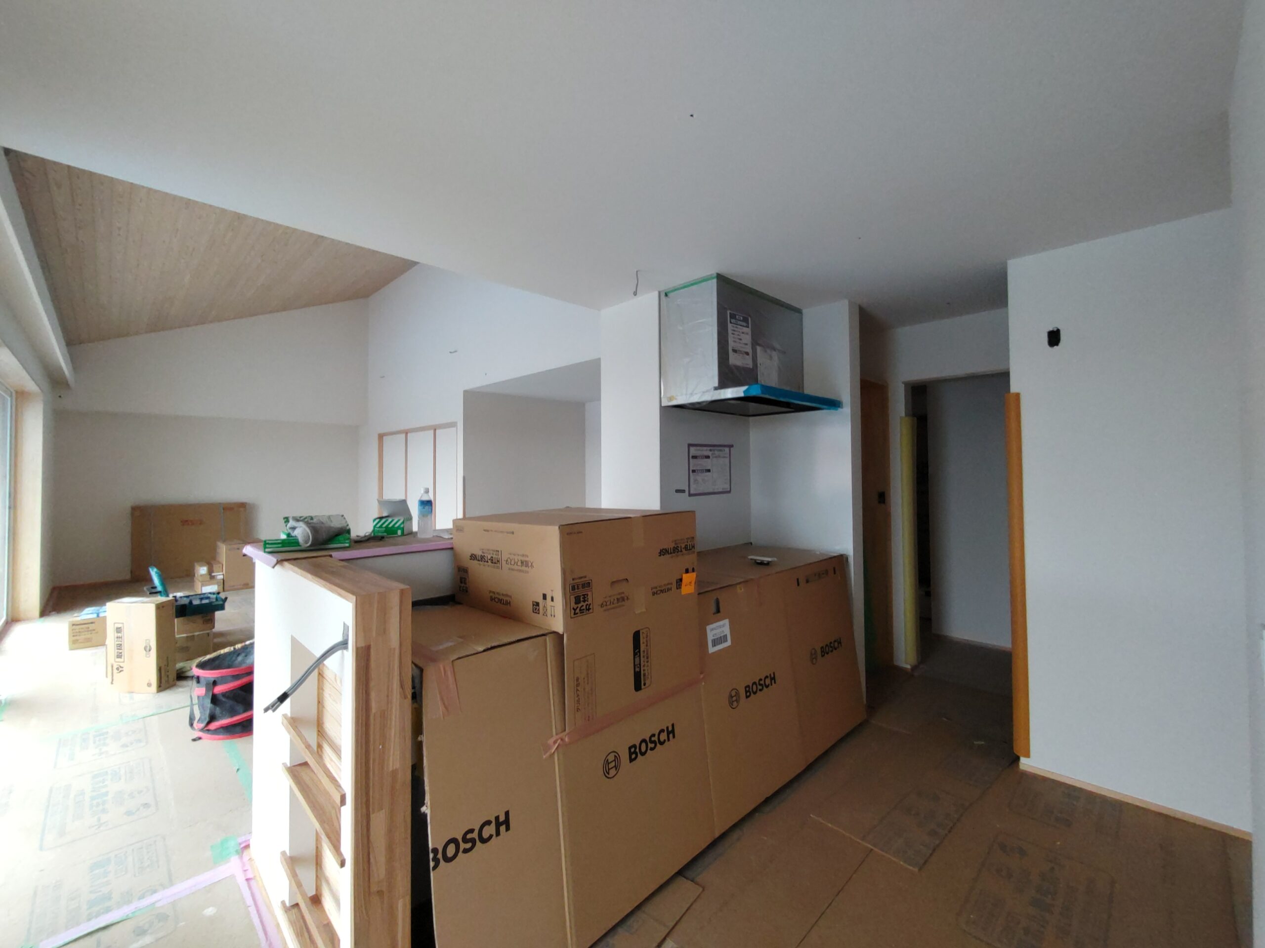 内装はクロス工事がすべて終了。年末駆け込みでキッチンの施工も終わっているようです。だんだんと現場から『住宅』に変わっていっている段階を感じます。