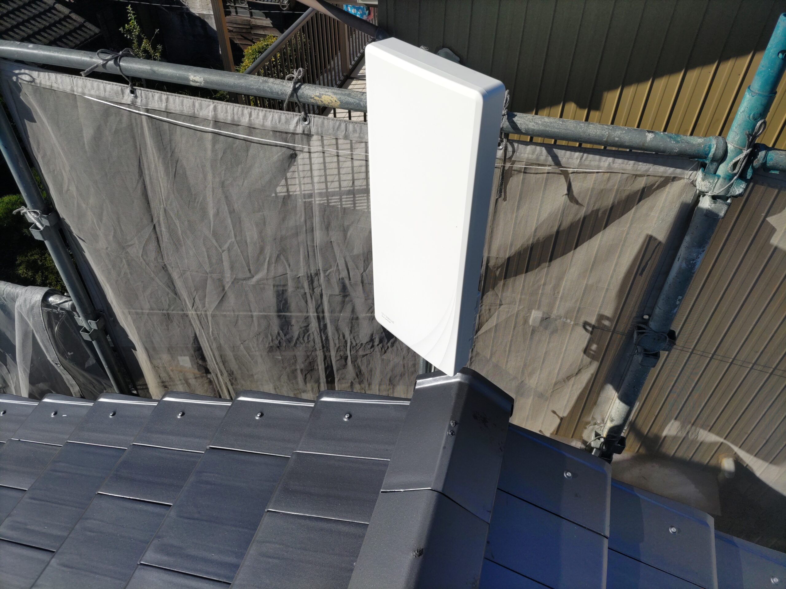 屋根の上の太陽光設備やアンテナ設備も施工完了。いよいよ仮設足場が解体される段取りとなりました。