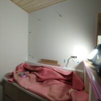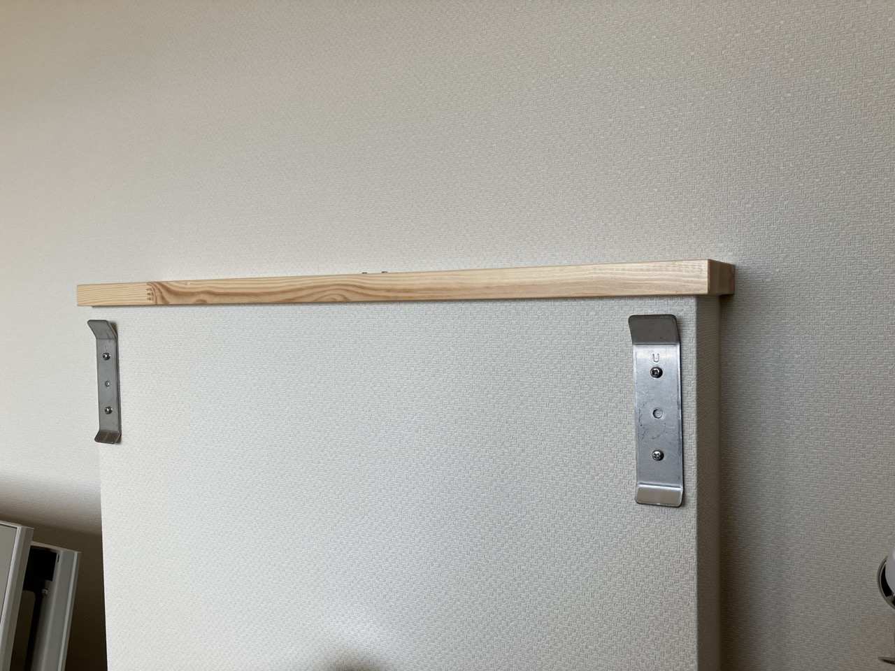 小屋裏への折畳みハシゴ上部の柱に手摺を取付けました。意外と盲点ですが、上る時でなく降りる時に体の重心が床より上にある時は何か掴むものが欲しいと感じます。柱も持てない事は無いですが手摺1本あった方がつかみやすいと思われます。床⇔天井間の壁に横向きに付けてもつかみやすいかと思います。