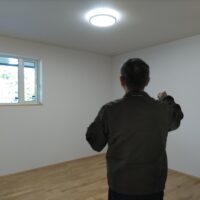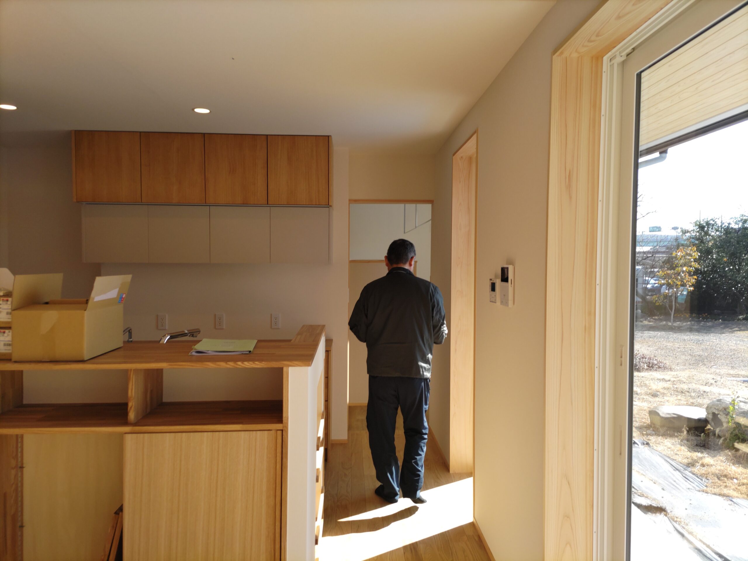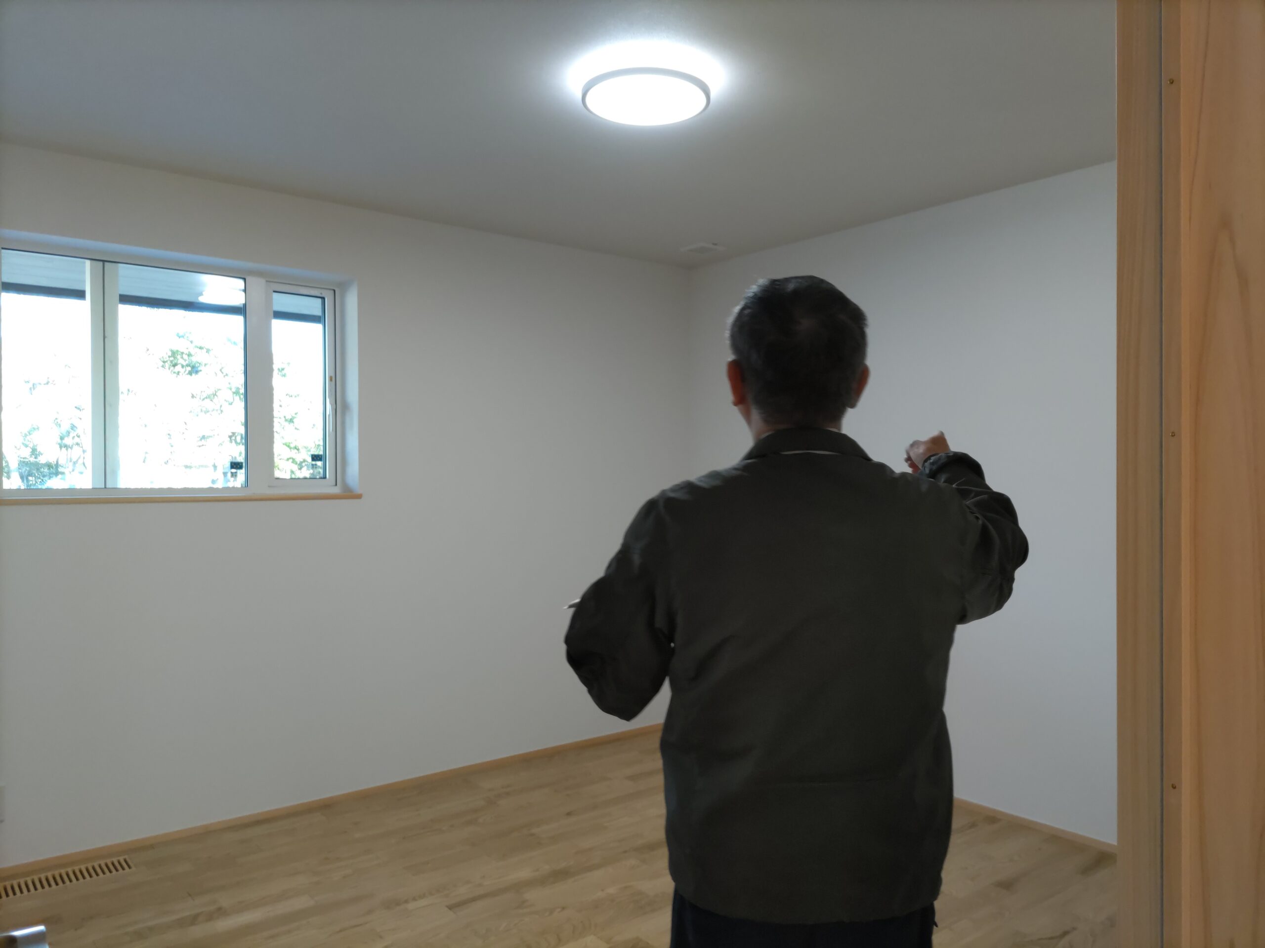 検査員が到着して各箇所を念入りにチェック。間取り、開口部、設備機器など図面通りにできているかを確認していきます。その途中で一言、「いい住宅ですね・・」とおっしゃってもらいました。 考えてみれば確認検査機関の検査員はいろんな工務店の住宅を訪れているので目も肥えているでしょう。その方に良い感想をもらえれば励みにもなるというものです。