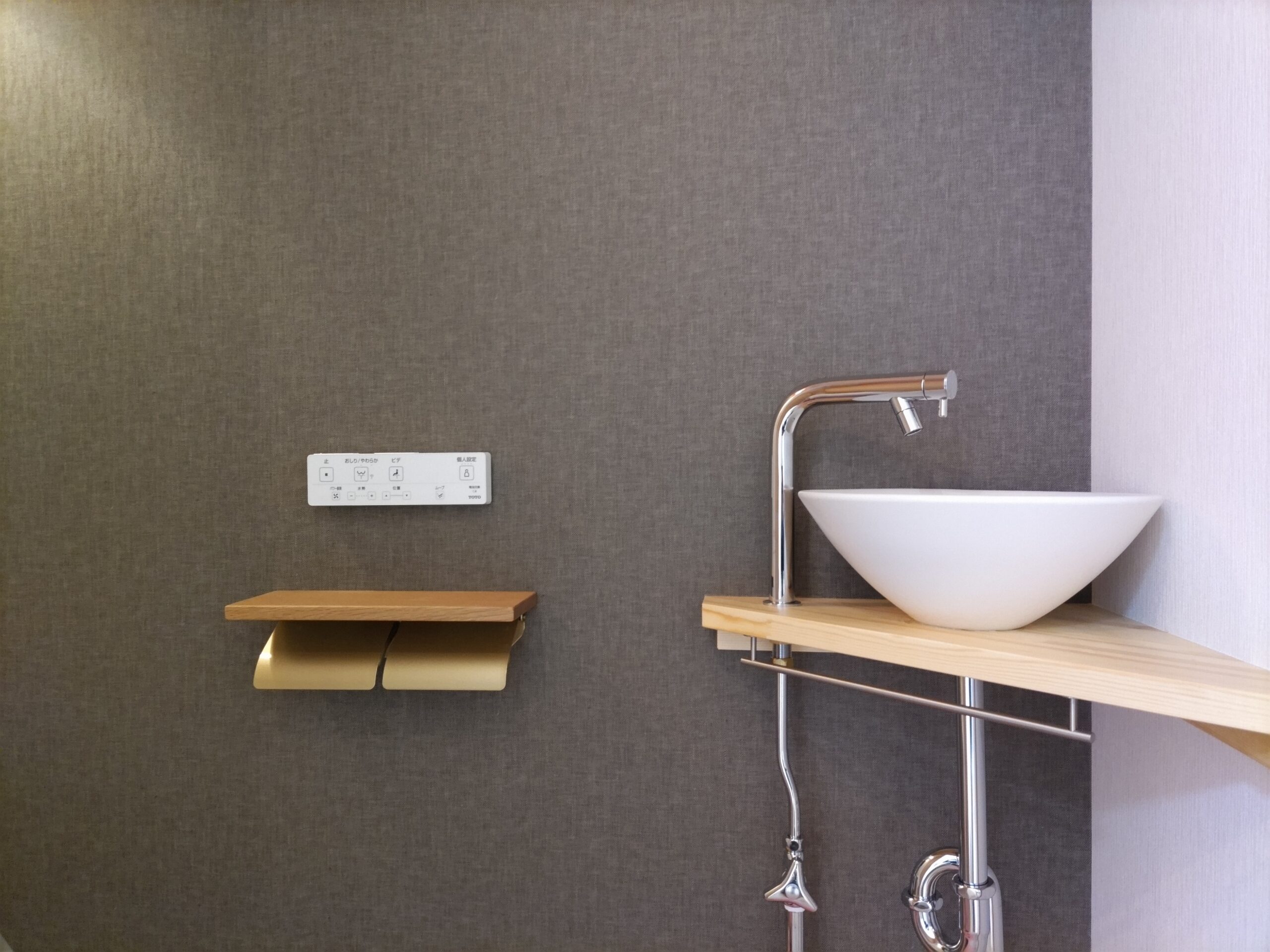 お昼頃にお客様が少しだけ途切れるスキを狙ってf様から届けられた紙巻器やタオル掛け、リモコンを取付け。