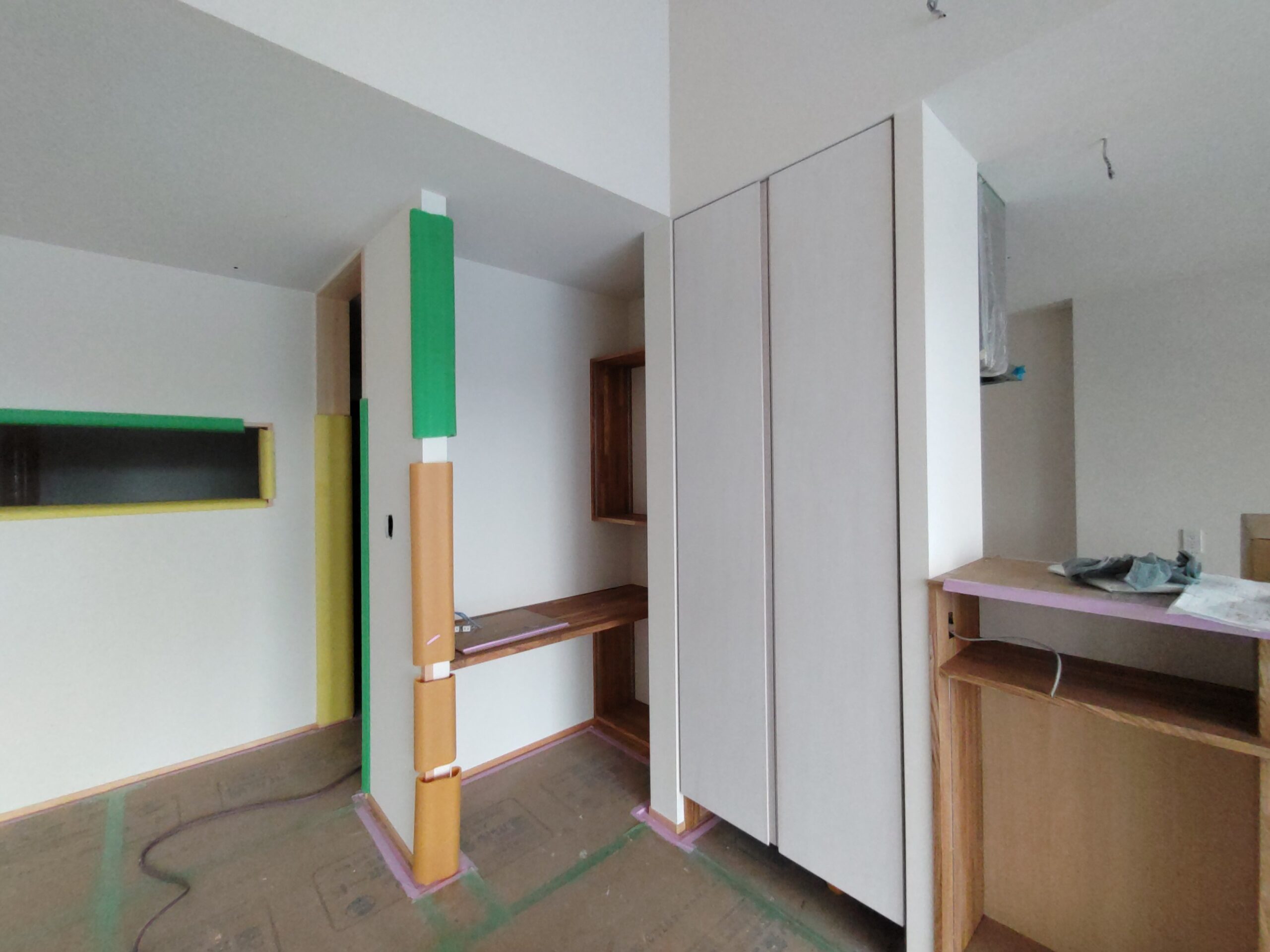 内装クロス工事と相前後して各部塗装工事や家具工事もいつの間にか完了しています。