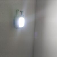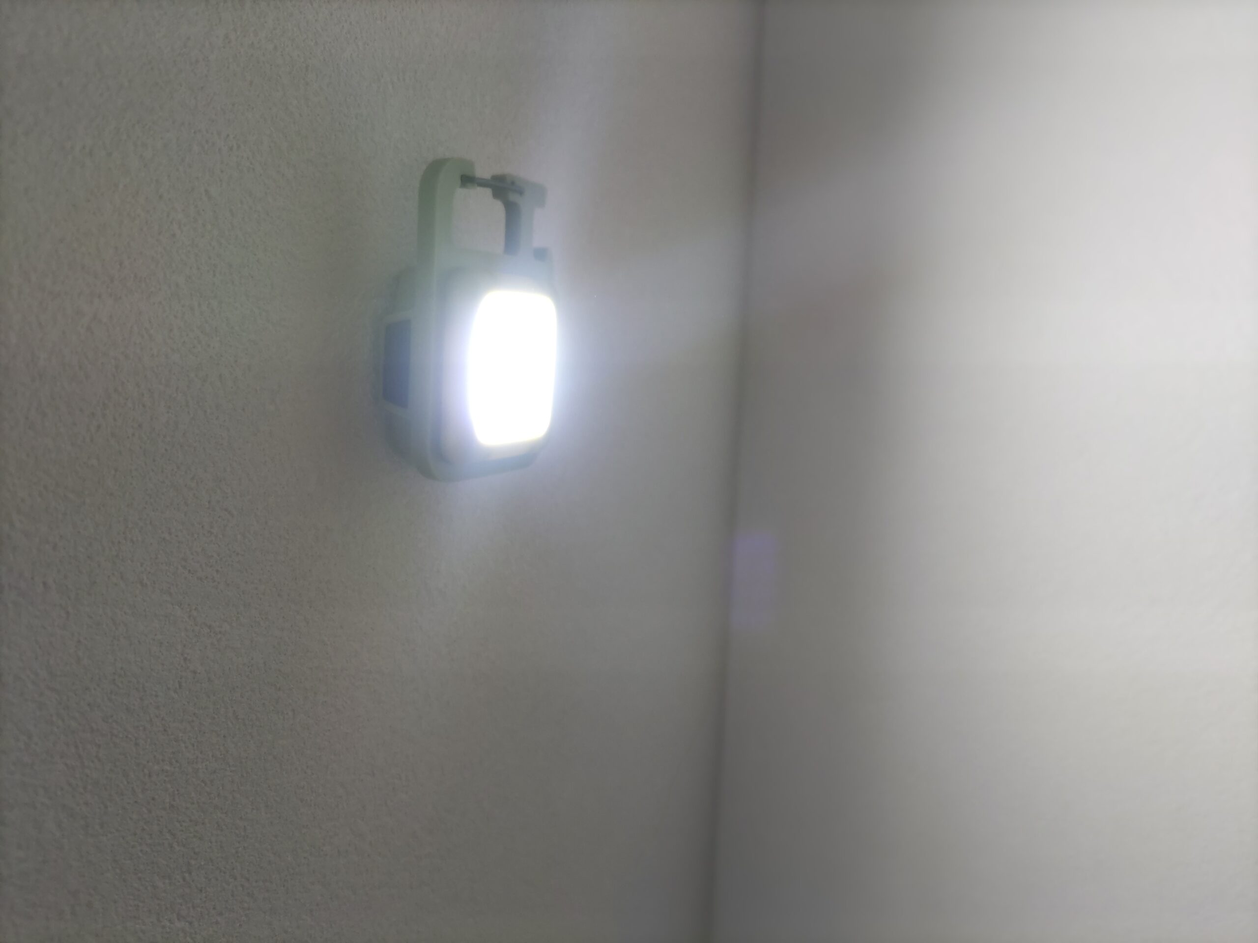 デスクスペースの壁にはマグネットの付けられる下地を採用。メモなどを張っておくのに便利です。100均のマグネット付きLEDライトを無意味に点灯させて実験してみました。