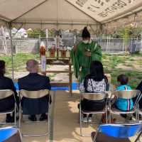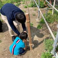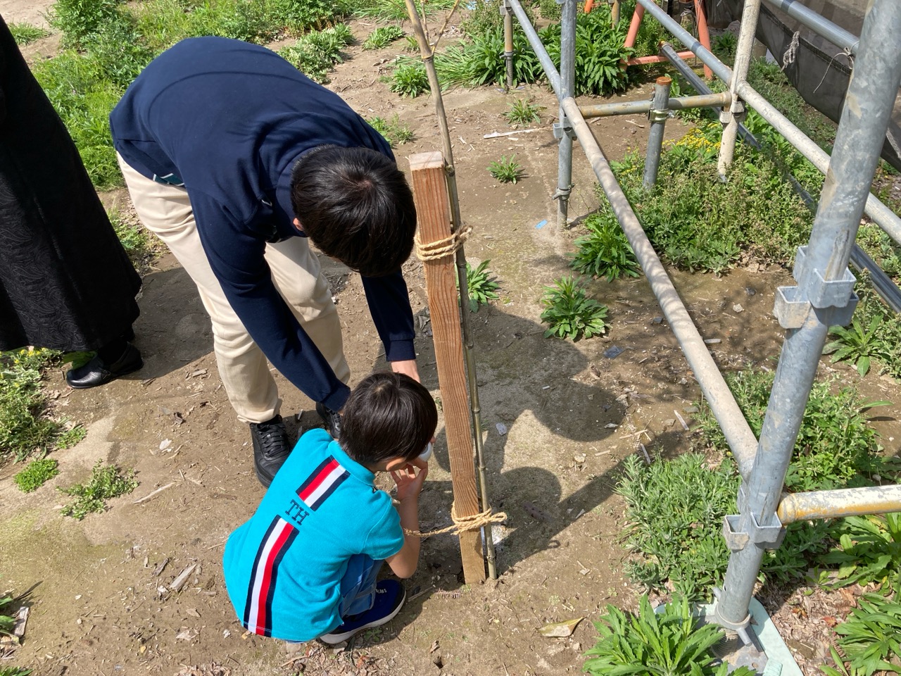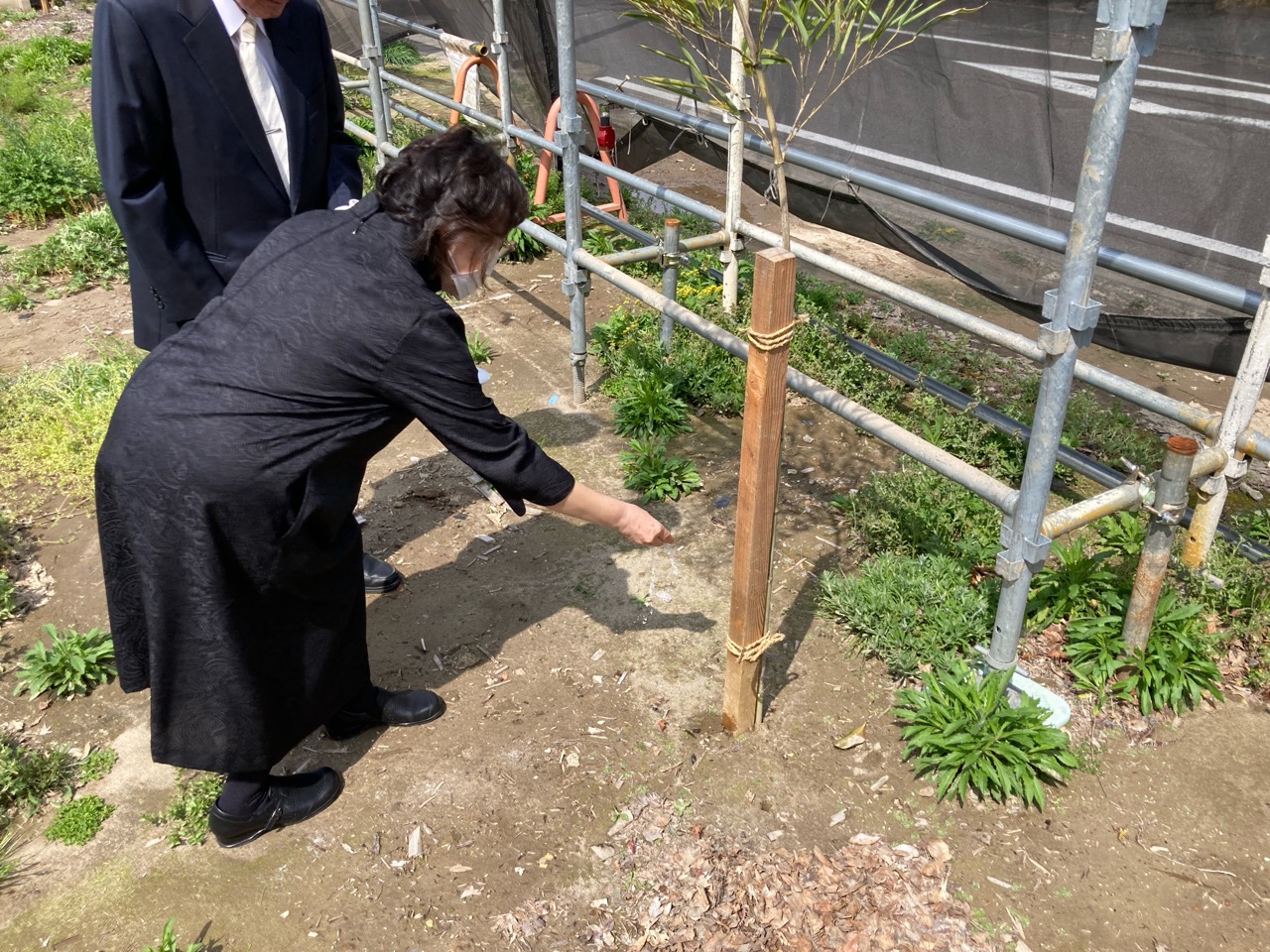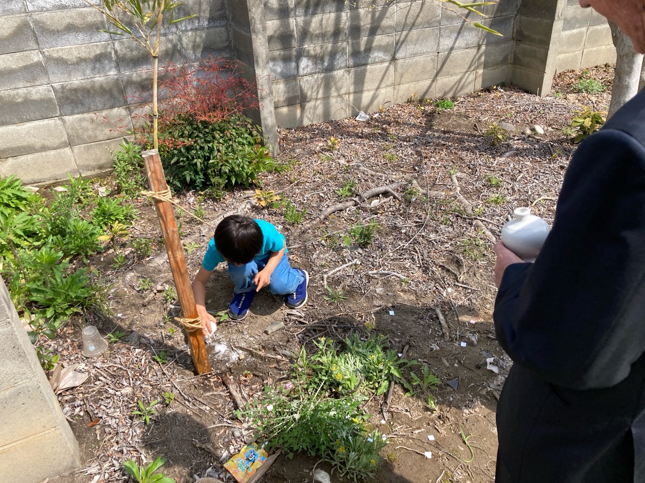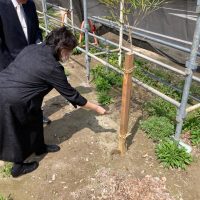 体感の気温だけで言えばもはや初夏と言っても過言ではない本日、地鎮祭が執り行われました。h君も半袖シャツで参加。初めて見る神事に興味津々です。