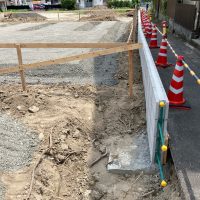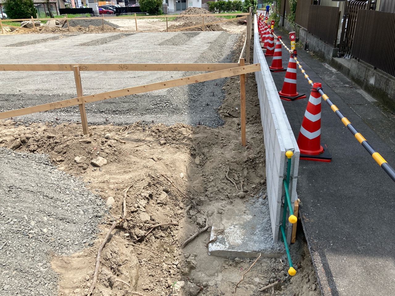 しばらく現場に来ていなかったうちに外構工事も着々と進んでいます。元々敷地に立っていた樹木をシンボリックに見せる塀の配置。できあがりが非常に楽しみです。