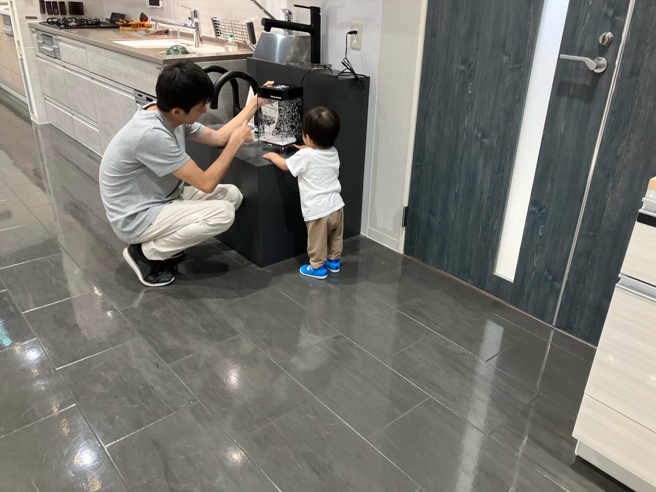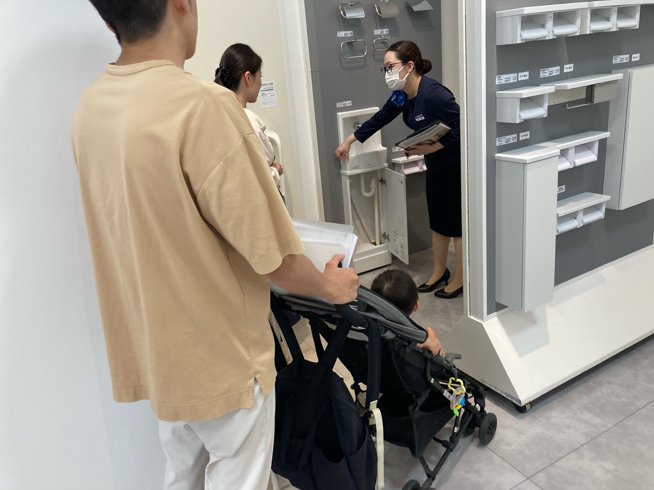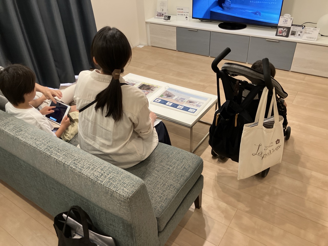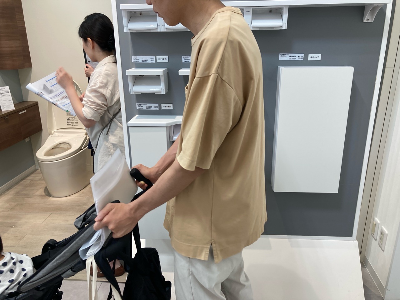 設備機器の確認をしに某T社のショールームへやって来ました。アドバイザーの説明を聞きながら機能を一つずつ確認していき、どの商品を選択するべきかを検討していきます。souちゃんはお打合せ時でもいつも物怖じせずニコニコしていますが、今日もベビーカーの上でご機嫌です。