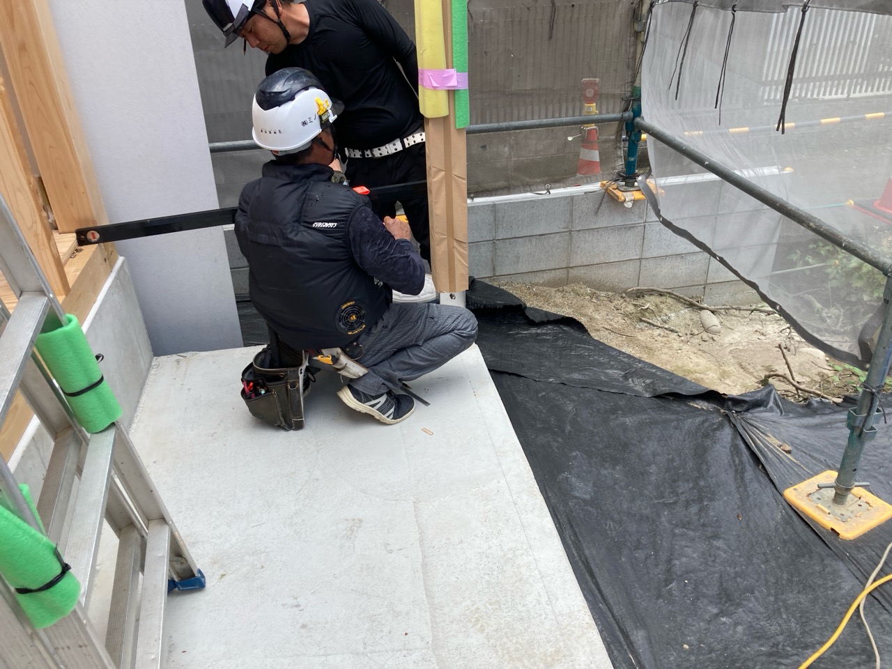 板金工事のy江板金さんが土台水切を取付けてくれました。作業管理アプリから作業開始の通知が入り、遺産で現場に向かってみましたが、すでに作業を終え颯爽と帰って行った後でした。