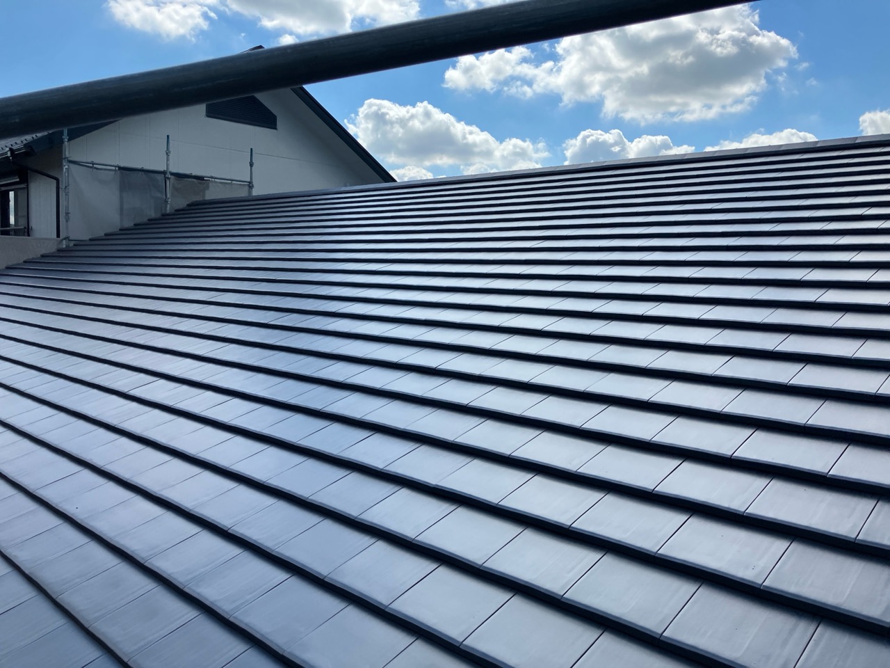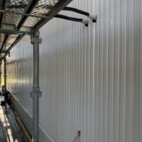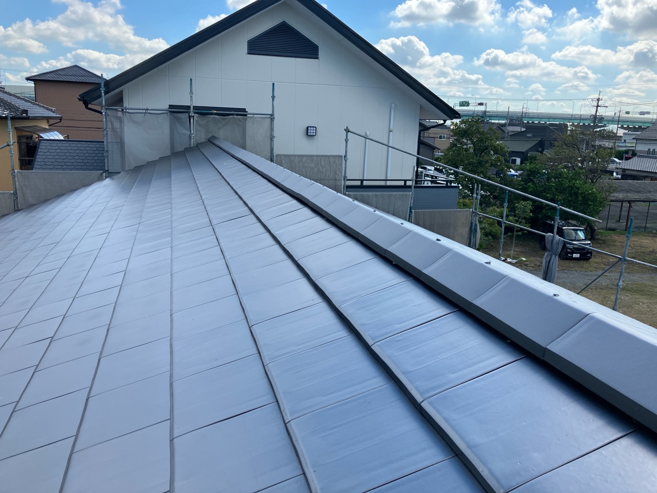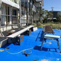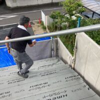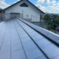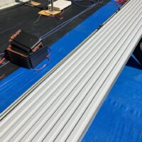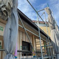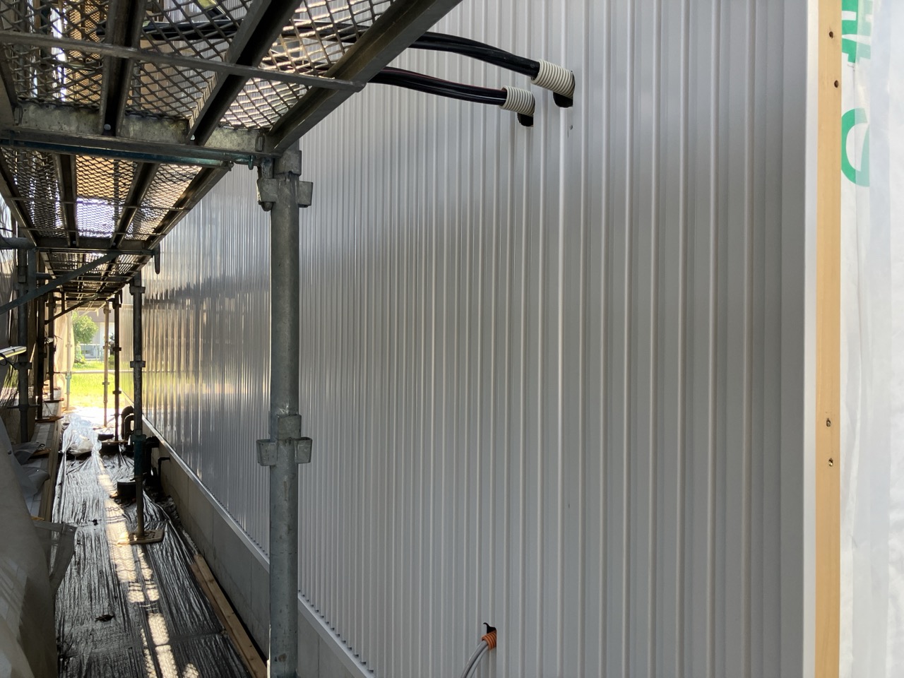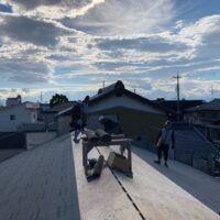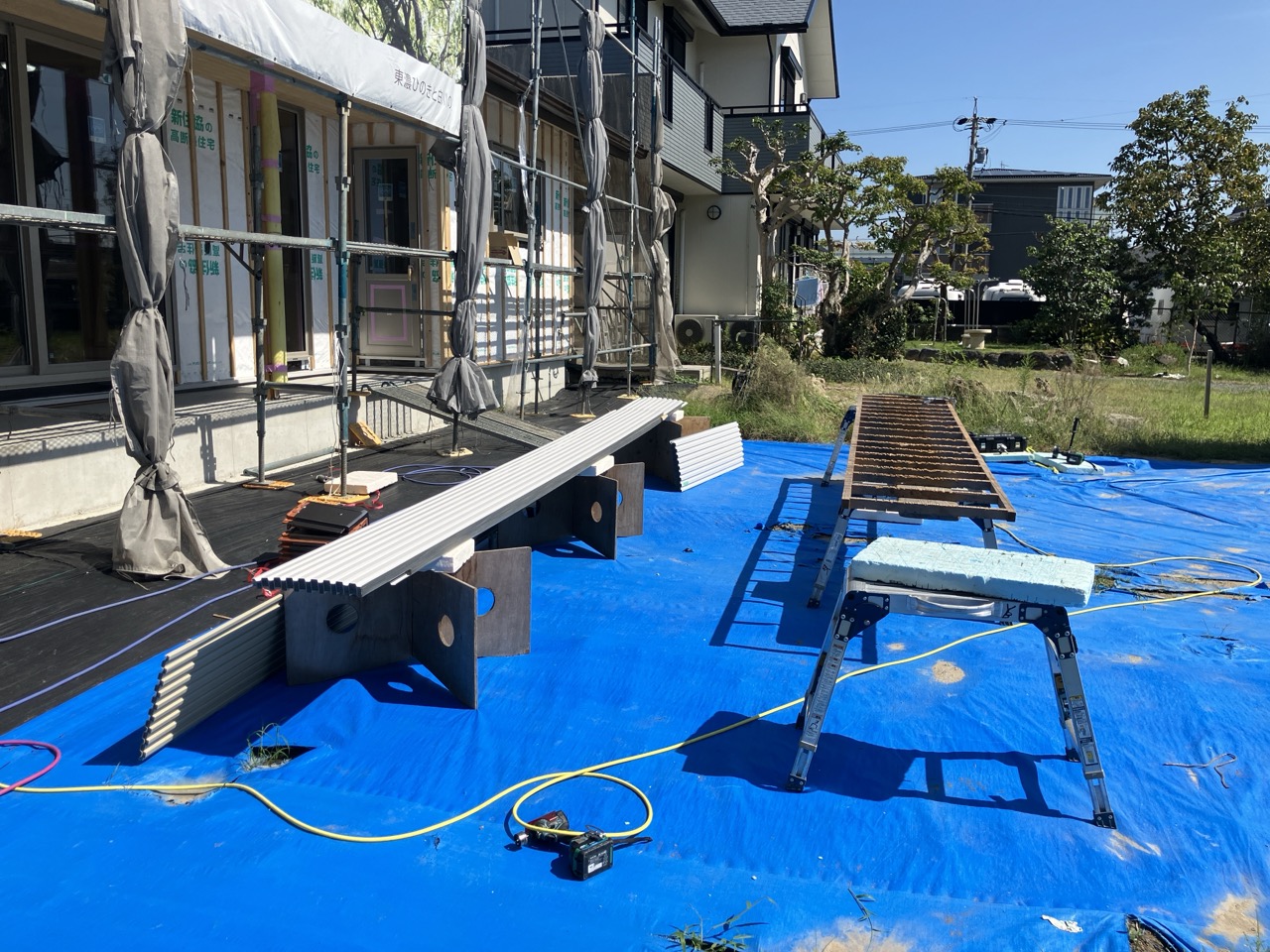 外壁の板金工事が進められています。一時の暑さが過ぎ去ったとはいえ、まだまだ板金の上では目玉焼きが焼けそうなこの日差し。熱中症には要注意です。