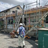 本日はJIOの中間検査のために現場へやって来ました。この炎天下の中外部の下地をつくり続けるw辺棟梁と応援のk保木君。屋内は日影なのでまだマシですがそれでも建っているだけで汗ばんでくるこの灼熱の現場。2人にも熱中症に気を付けてもらいたいものです。