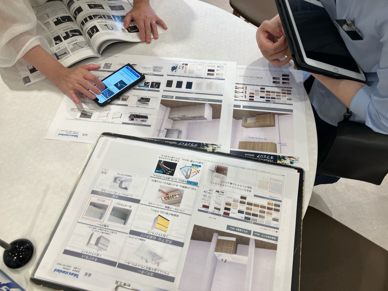 検討に検討を重ねるため、T社のショールームに再訪しました。色味もさることながら各機能についても吟味を深めていきます。
