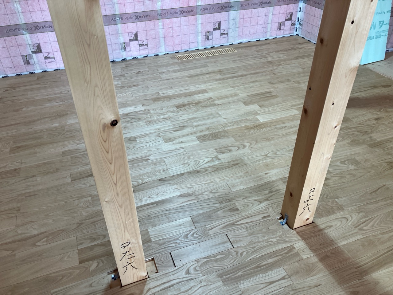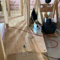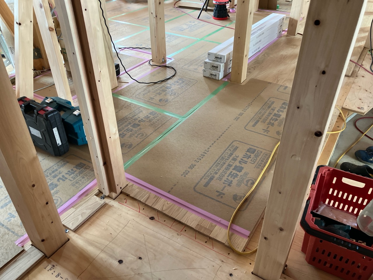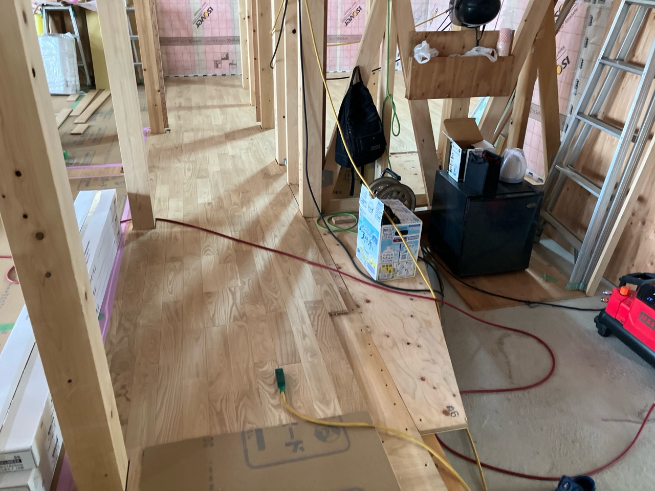 屋内の床フローリングが張られてきました。今回はf様のご希望で栗のフローリングを張っています。久く栗は使っていませんでしたが、硬く、水に強いという特徴があり、古い家のリフォームに行ったりした時に土台に使われているのを見る事があります。