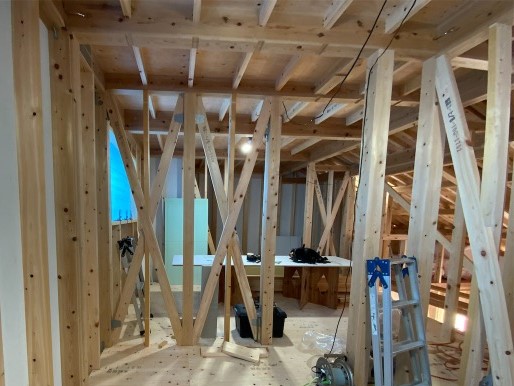 付加断熱が入れ終わったので、t電気さんも入っています。配線やダクト工事も、木工事に並行して進んでいきます。
