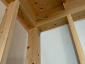 引き抜きの負荷が大きいところ、小さいところ、計算によって決められた金物が、柱頭柱脚に取り付けられます。