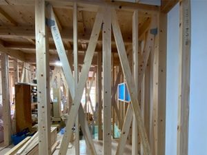 耐力壁となる面材も所定の強度を出すために、取付釘のピッチが決められていますので、確認していかれます。