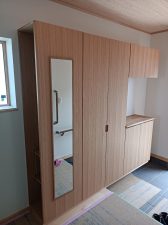 玄関の下駄箱も設置されました。今回は製作家具です。ok様邸は、建具も製作建具。どちらも、家具屋さんや建具屋さんと打ち合わせをして、お好みに合わせて造られるので、1点ものです👍