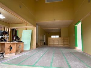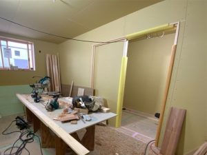 今週月曜日、s井棟梁が最後の追い込み中の様子です。次の日には引き上げて、クロス屋さんが入ってきています。