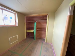 造作の棚も取り付けられています。玄関ホールからキッチンまでの迂回路にある納戸の棚は、一足お先に、きれい好きのs井棟梁の道具置き場になっています👍それにしても収納たっぷり~最近の物価高騰によっていろんなものが値上がりしているので、お値打ちな時に買いだめもできそですね~いいなぁ~ちょっとした納戸。私の中では、今納戸がアツイです!