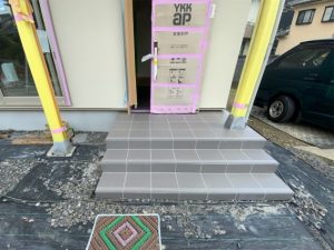 ついつい、内部の写真ばかり・・・外部もお盆前に足場を外して、ポーチのタイル貼りなども終えています。