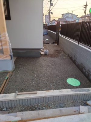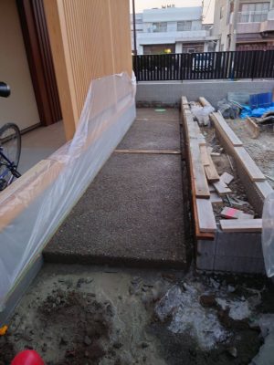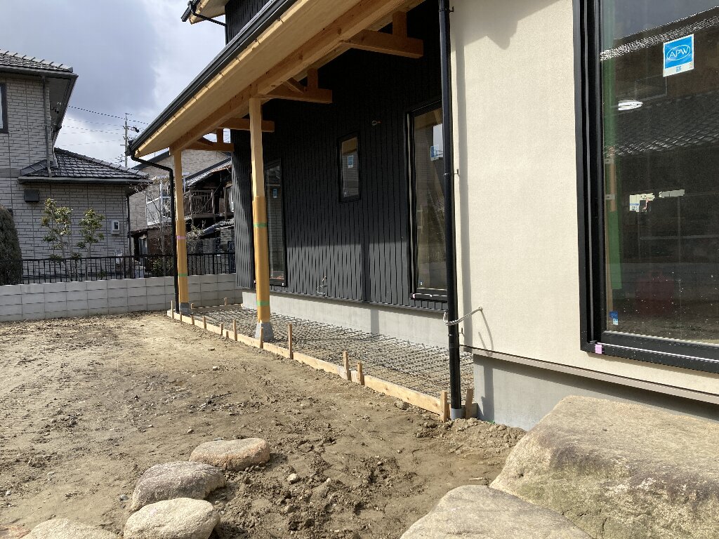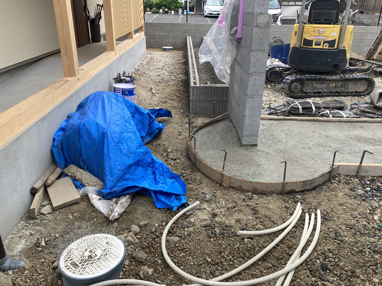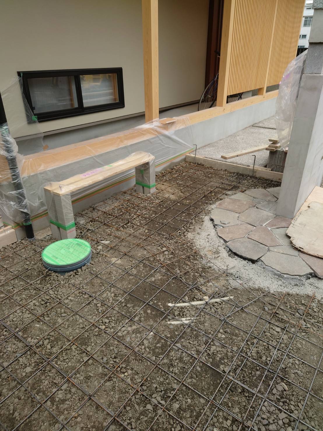 n冶業務店さん、今日は午前中にアプローチの下地の土間を打ちました。雨が降ってきてしまいましたので、洗い出しコンクリートも打ちたいところ、今日は断念です💦外仕事は、天候に左右されるので、rさんはお昼休憩中はスマホの天気予報とにらめっこしています(笑)