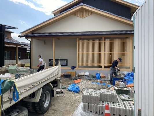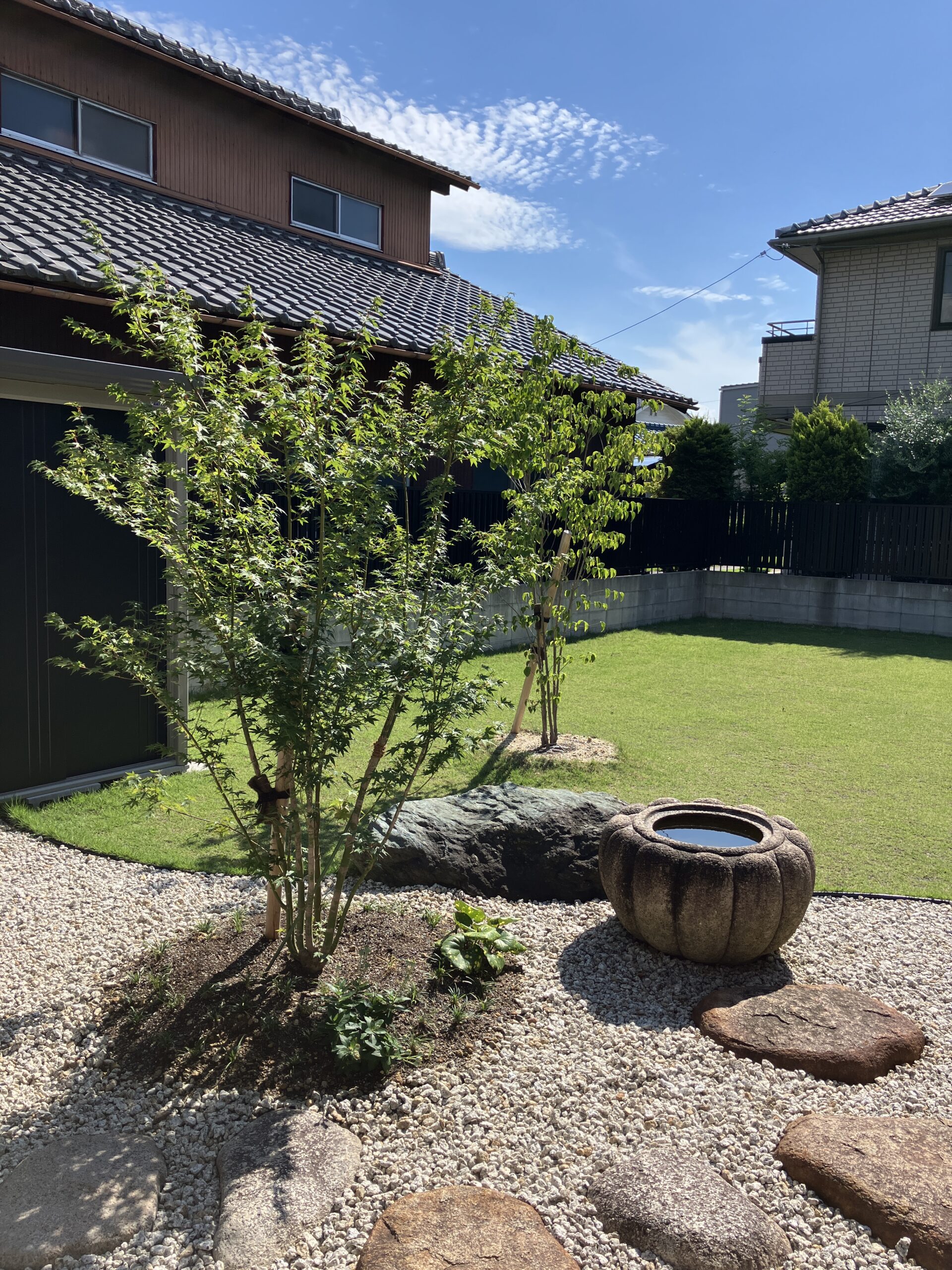 外構工事も、いよいよ植栽のみとなりました。和室やリビングから緑が眺められるのは良いですね。
