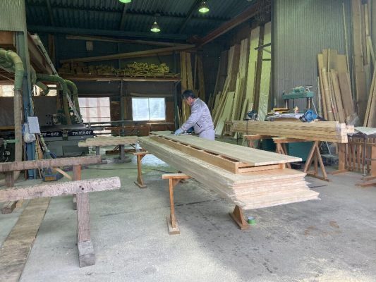 今日は月に一度の本社会議。白川は昨日雪が降ったそうで、日陰にはちらほらと雪が残っていました。加工場でs幸棟梁を発見!息子さんの部屋のロフト階段を造りに来ていました。息子さんからのリクエストで旧家の大黒柱を何かに使いたいとお預かりしていましたが、これから棟梁に加工してもらいます。こちらも楽しみですね👍