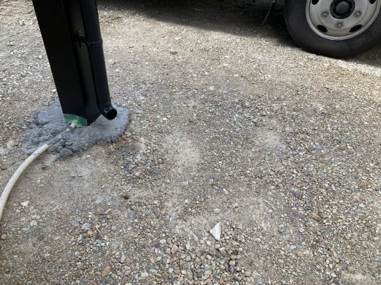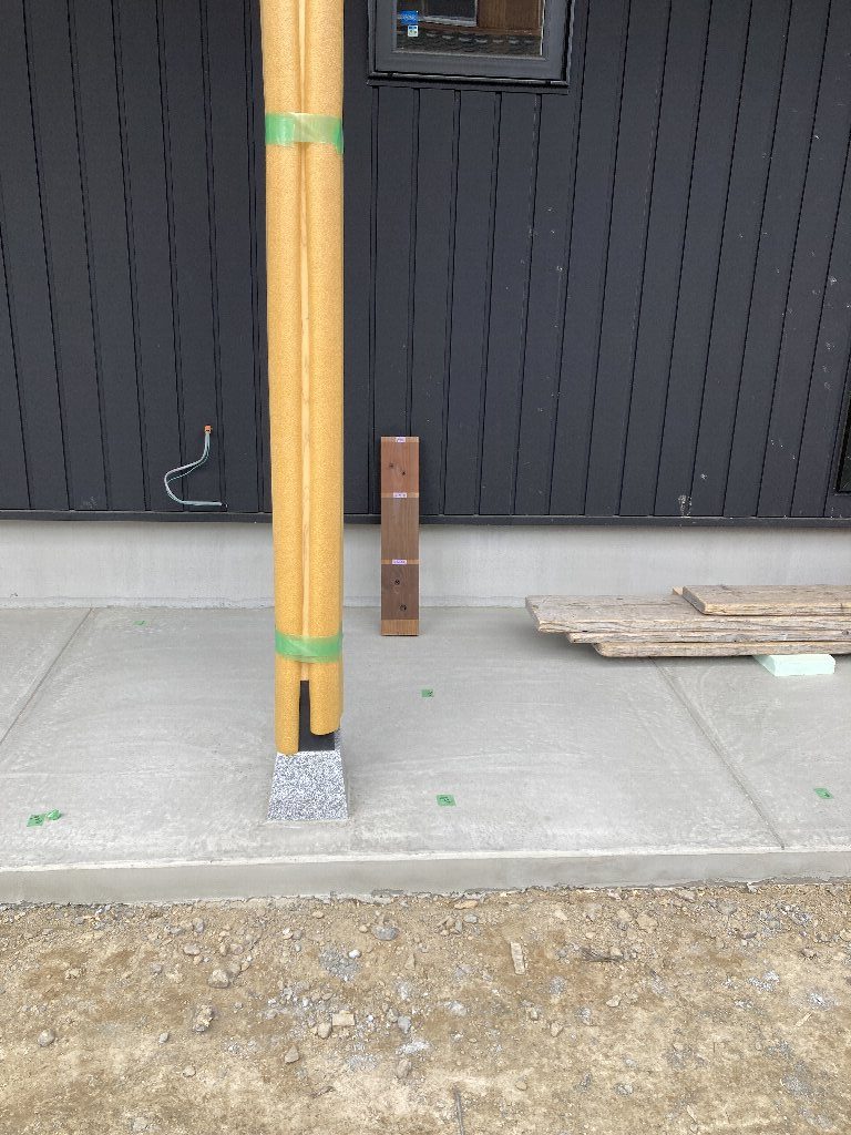 カーポートが大きいので、2個に別れた竪樋からは、結構な雨の量が流れる事が予想されますので、アプローチ側の雨水排水は、排水管処理してもらう事にしました。