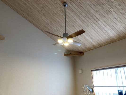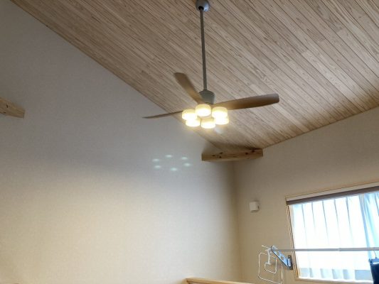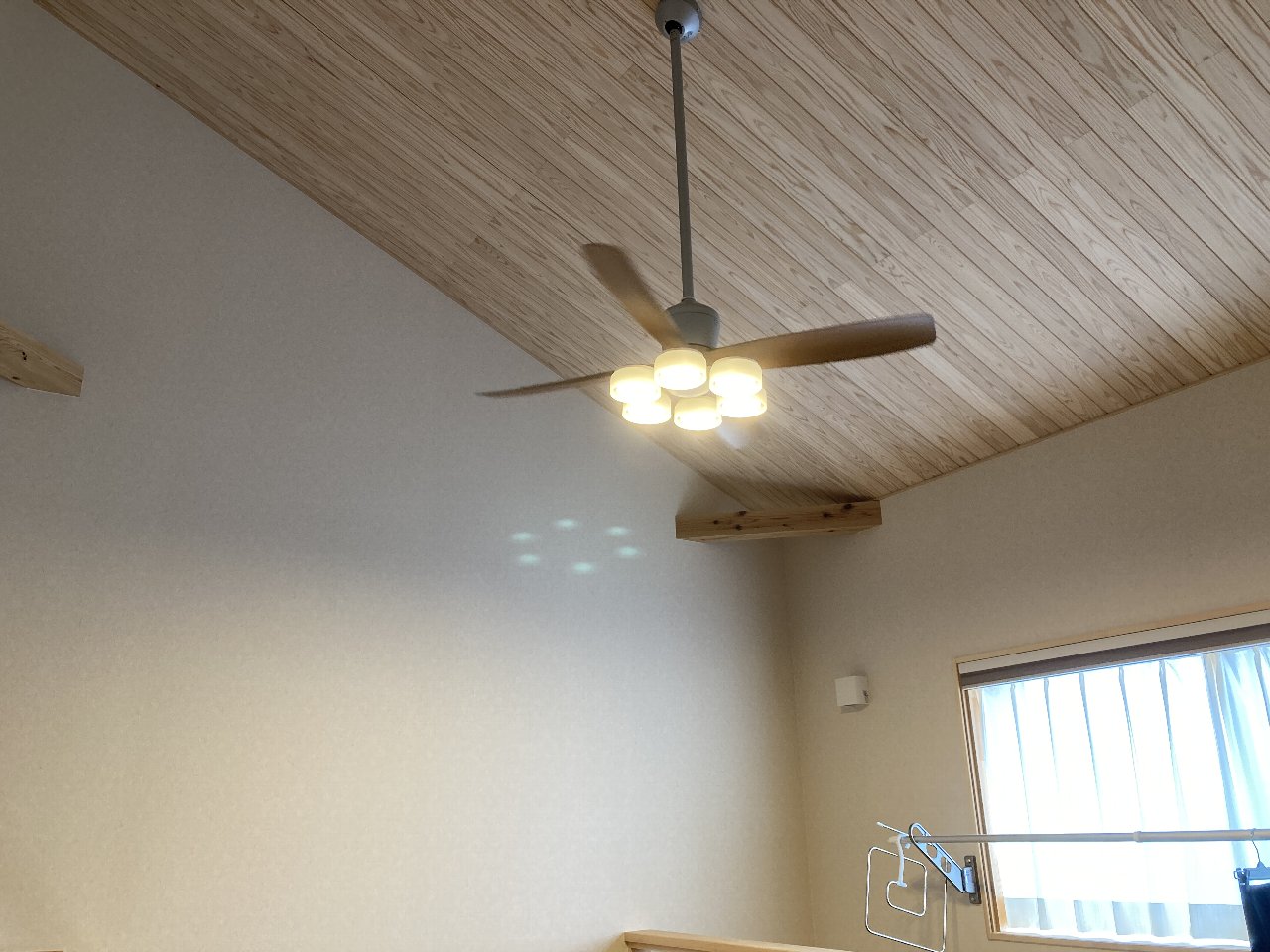 このファン付照明器具だけ取付が遅くなってしまいました💦先日納品されて、h場さんに取り付けてもらいました。ファンを回す事によって気流が出来るので、室内の温度差が少なくなる効果も期待できます👍ファンを付けられなった方は、サーキュレーターも有効なので、是非試してみてください。