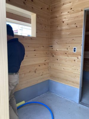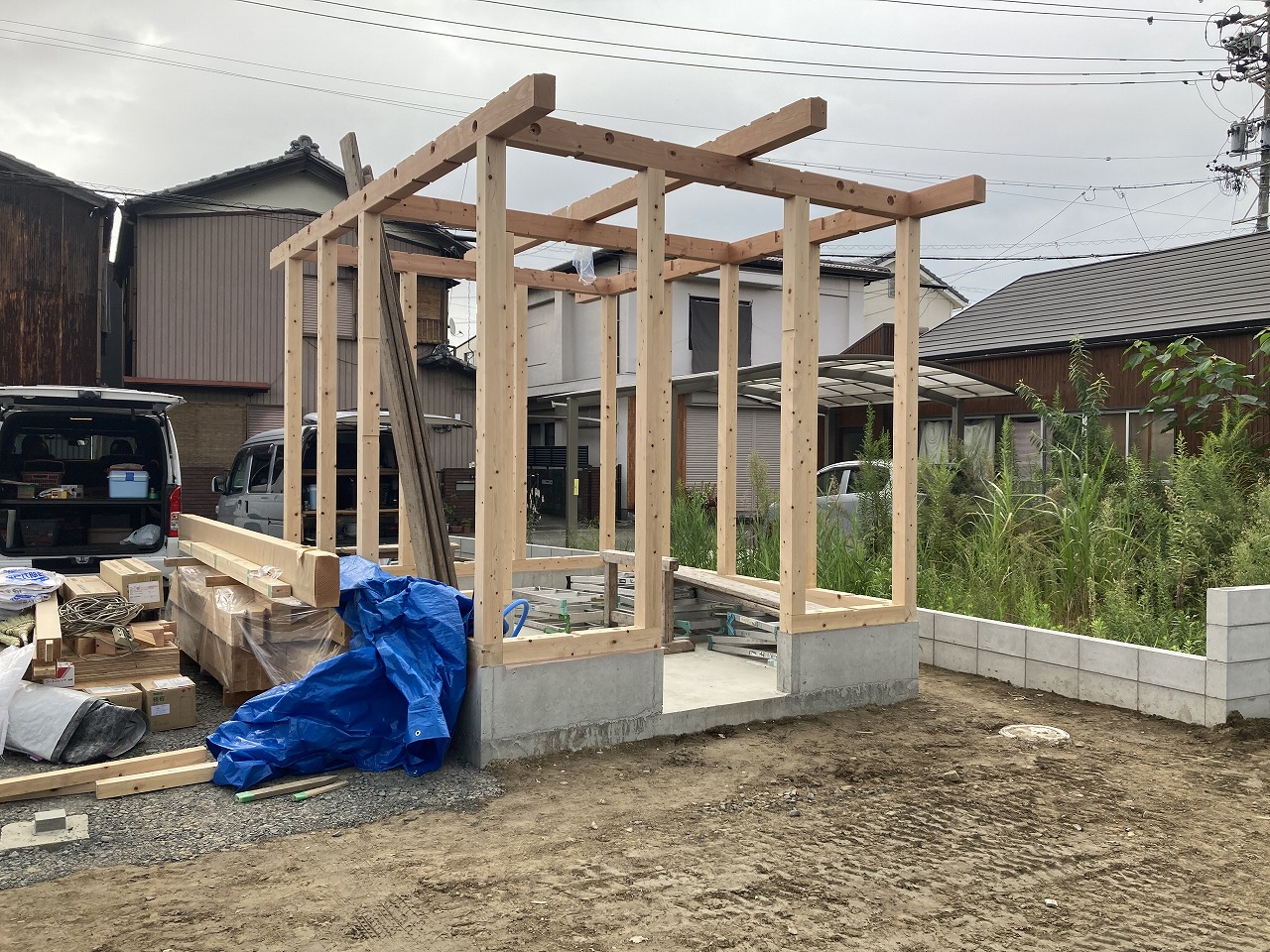 基礎工事は、t広さんが20日の上棟に向けて頑張ってくださり、昨日と本日でs幸棟梁が土台伏せに来ました。あれ?なんだかコンパクトな家?ではなく、これは魚釣りが趣味のご主人が魚を捌く為の小屋です。