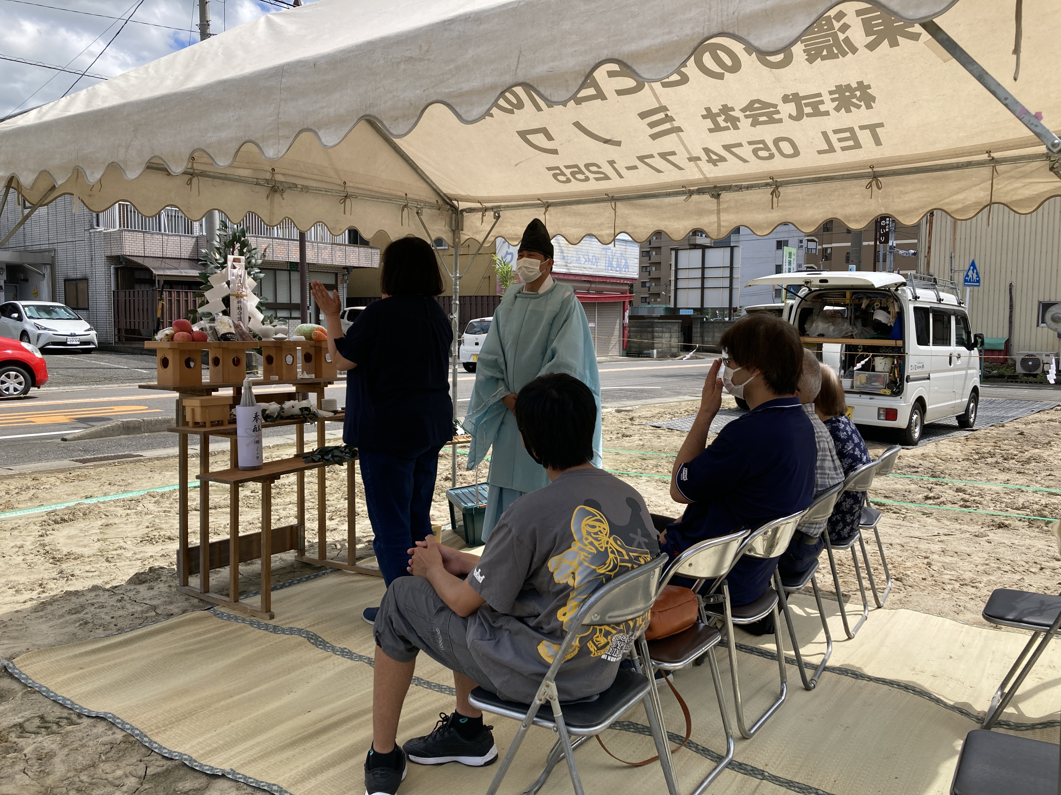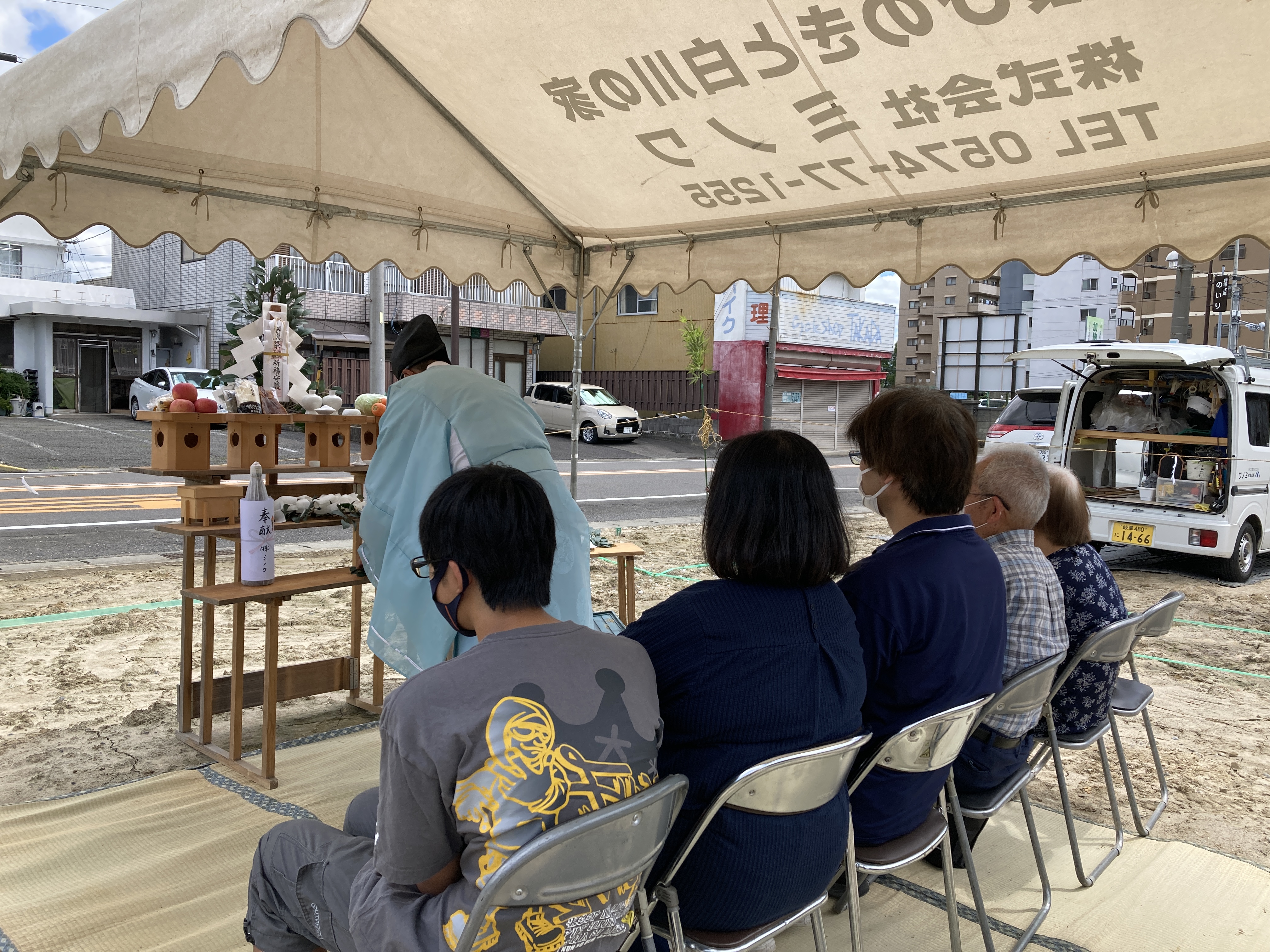 先週一週間お天気良く、解体が終わった時には雨が降りドロドロだった地面もすっかり固まり、本日は地鎮祭を無事に行う事ができました👍昨日、「梅雨明けしたとみられる」との発表があり、なんとも運がいいですね。