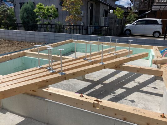 昨日は、s幸棟梁の愛弟子k保木君も手伝いに来てくれていました。ず~と一緒に働いていた親方と、独り立ちしてからは上棟や土台伏せくらいにしか会えないですが、どんな感じなんでしょう。ハグとかしたくなるのかなぁ。きっと、s幸棟梁は、久しぶりに会うと嬉しいでしょうね。基礎内の束には、鋼製束を使用しています。高さを調整できるようになっており、便利ですね👍昨日は、暑い中お疲れ様でした。