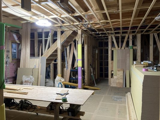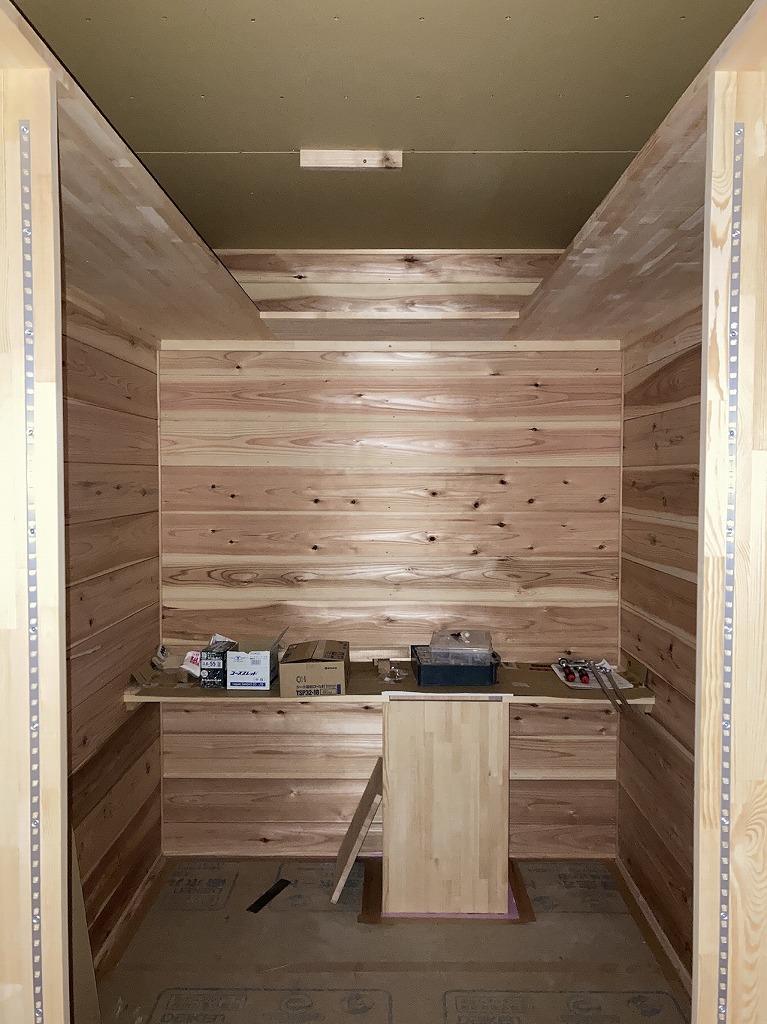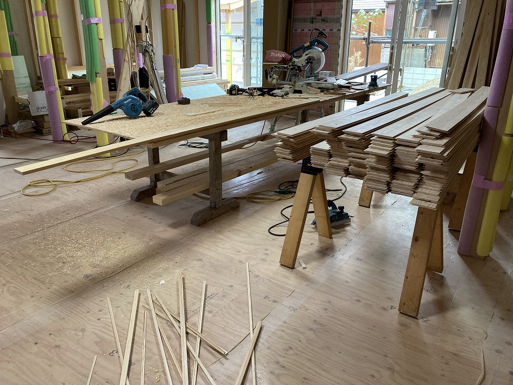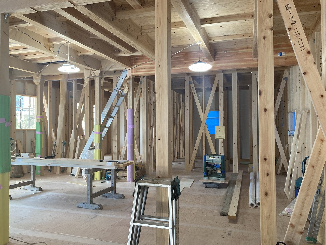 造作工事がほぼ終わり、s幸棟梁の道具や作業台が片付けられ、ちょっと寂しいですが、広かったのねっという感じです(笑)