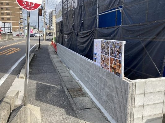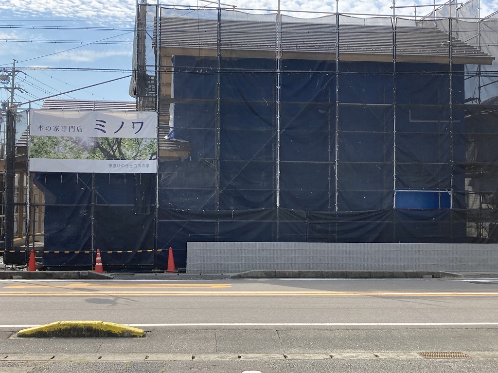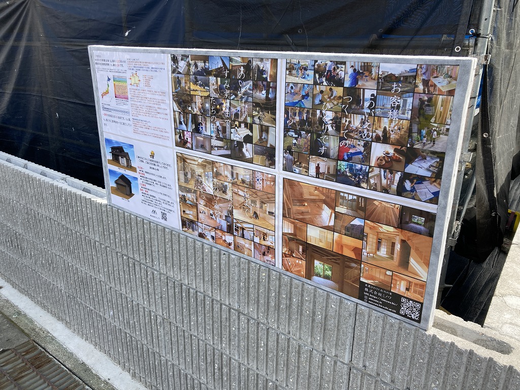 上棟日、i様ご夫婦に「うちにもミノワさんのあの看板立てたら、いい宣伝になるのに~」と言われて、はや4週間目。お待たせしました💦💦h師匠監修の元作成し、本日oちゃんが設置して来てくれました~!バス停の真ん前。ベスポジです👍これでミノワは安泰ですな。