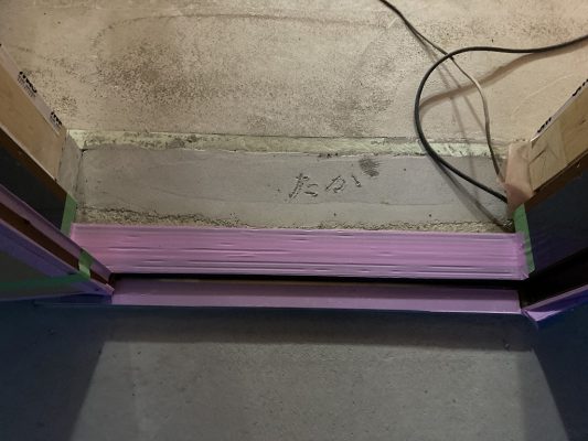 なかなか、基礎工事にお邪魔できなかったので、o本君が撮ってきてくれた写真を少し載せたいと思います。湿潤養生を経て、お天気を見計らってセルフレベリング材を流して、基礎の立上り表面を平滑にしました。脱型後、玄関のスロープと階段を施工しています。t広さん、ありがとうございました。また最後に基礎の立上りのモルタル塗りの際は、よろしくお願いいたします。