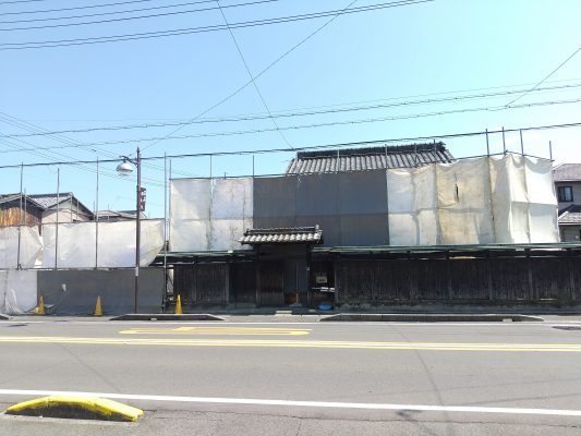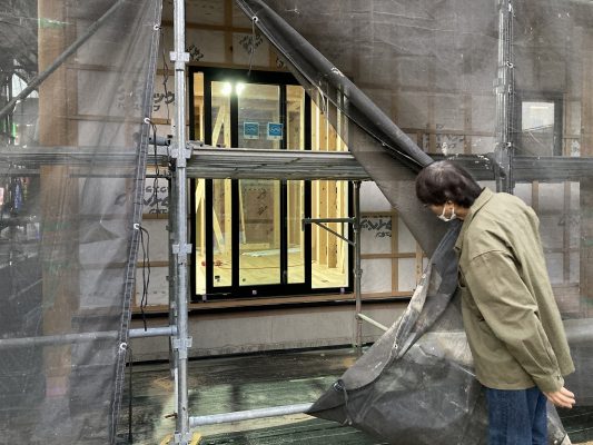 養生シートですっぽりと覆われました。工場と借家は跡形もありません。